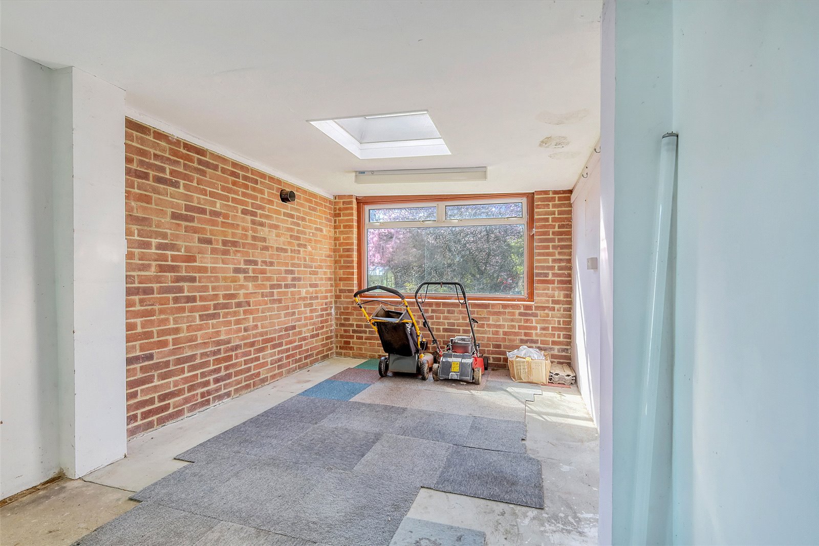 A substantial room built to the rear of the garage, with double glazed window to rear and overhead skylight window. Power and light connected. A fantastic space for workshop, games room or use as a garden room. Personal door to Attached Garage.