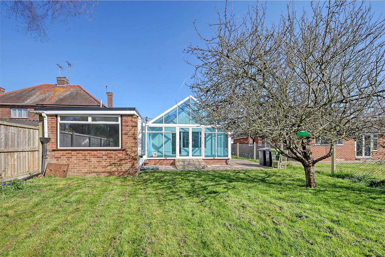 A substantial three bedroom detached bungalow with a superb double glazed sun lounge addition to the rear, a four car driveway, large attached garage and spacious workshop/garden room addition. Impressive, established landscaped garden backing onto light woodland with lakes beyond. No onward chain!