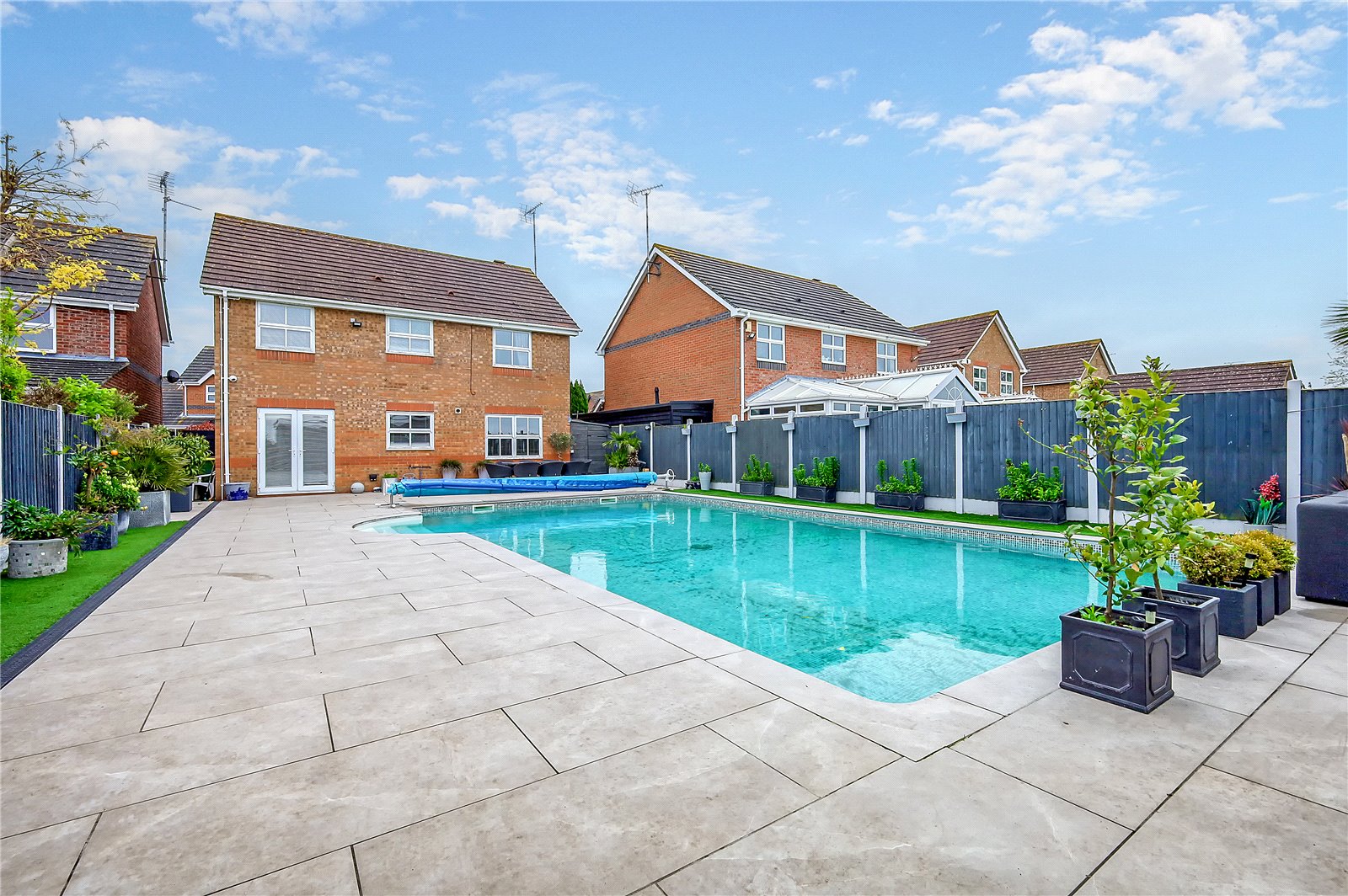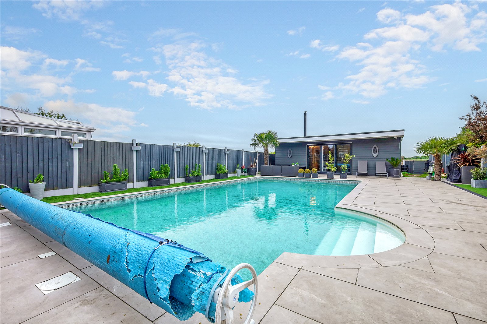 A beautifully appointed four bedroom detached executive family home with heated swimming pool, a spectacular contemporary kitchen/breakfast room, a showstopping detached garden lodge and panoramic open farmland views. Must be seen!