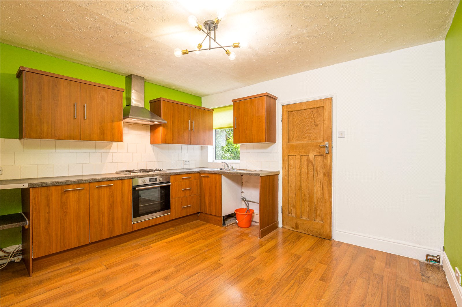 Double glazed window to rear. The kitchen area has been fitted with a comprehensive range of base and eyelevel cabinets with rolled edged working surfaces and inset stainless steel sink unit with mixer tap. The integrated appliances include split level fan assisted electric oven in brushed steel, with four-ring gas hob and brushed steel extractor canopy above. Ceramic tiled splashbacks to all working surface areas. Space, plumbing and drainage for automatic washing machine/dishwasher. Space for upright fridge/freezer. Ample space for refectory table. Oak effect flooring. Radiator. Access to large understairs storage cupboard. An original panelled door leads through to: