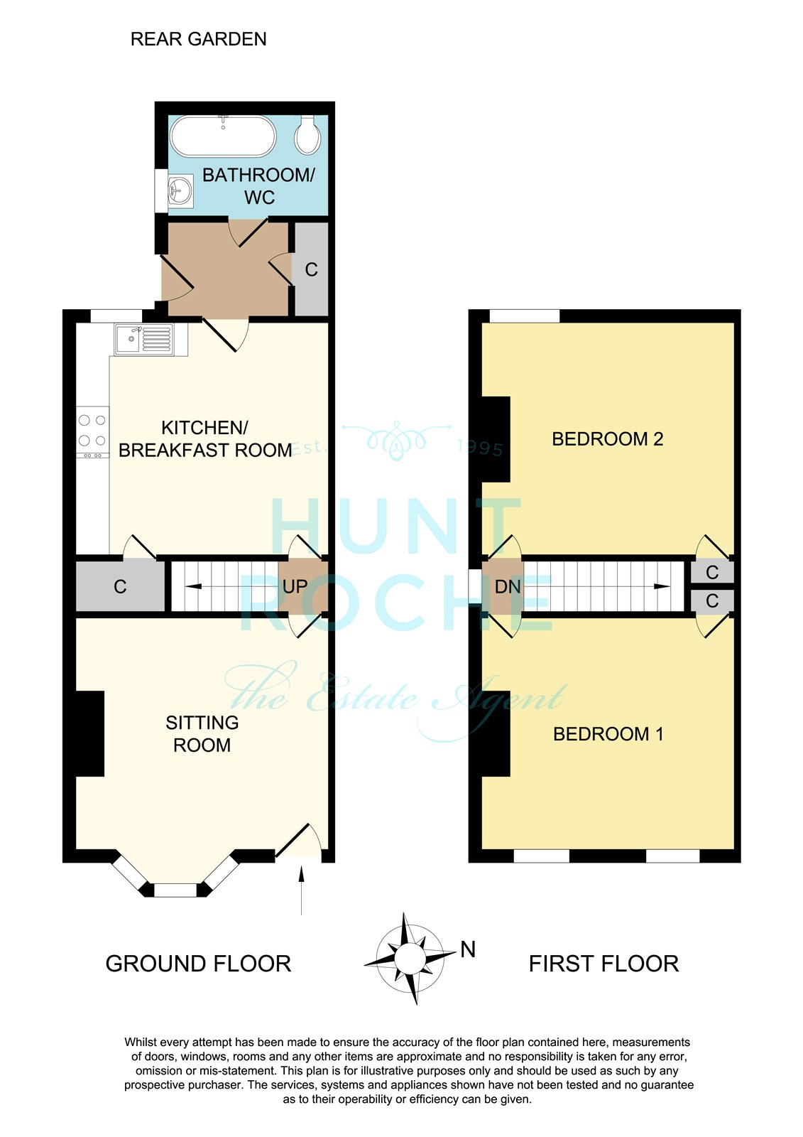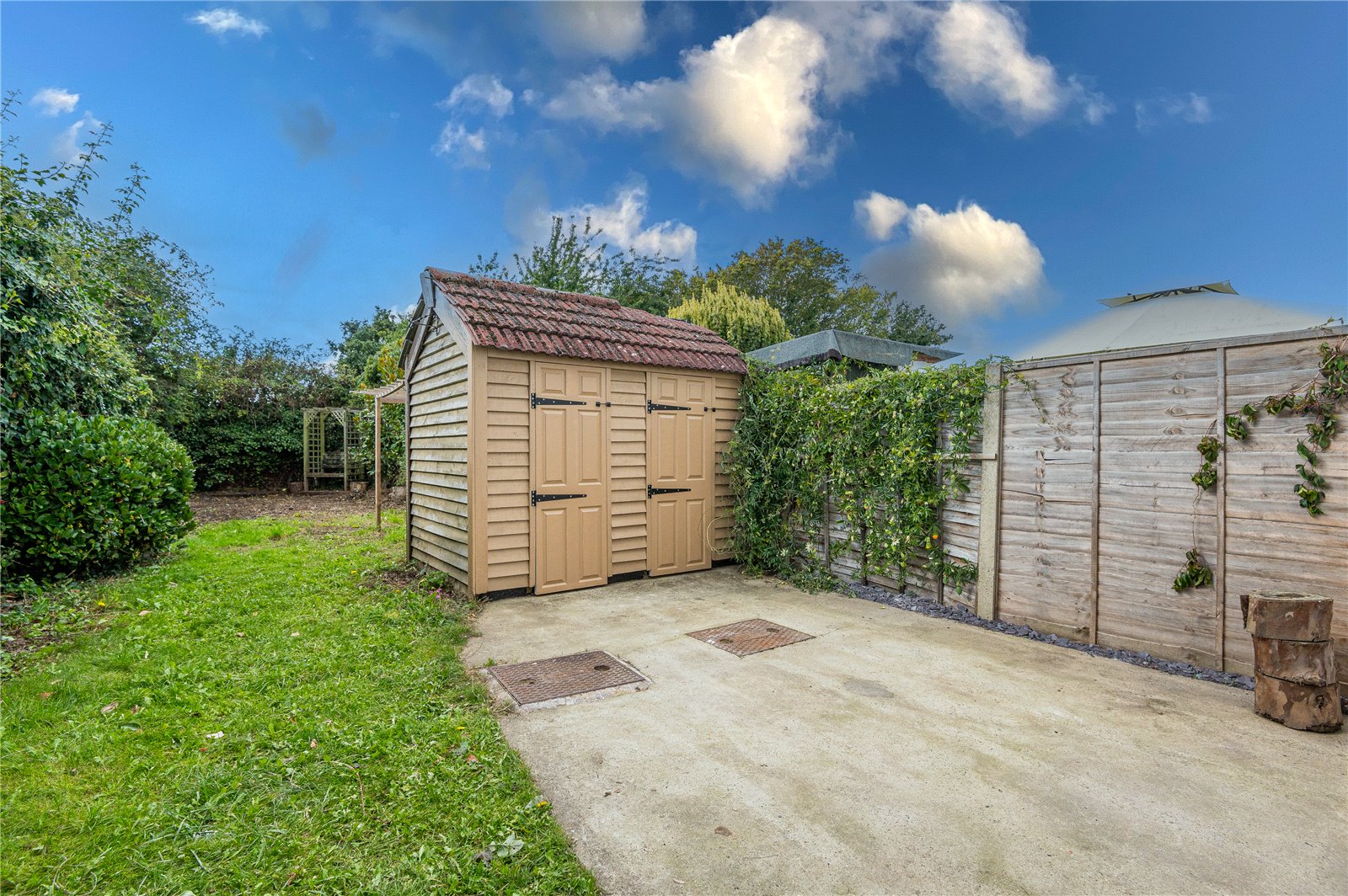 The rear garden commences from the outer lobby with a hardstanding patio terrace. There is access to two hand painted weatherboard clad brick built storage sheds, suitable for use as log storage or garden implements. The garden is attractively laid to lawn and unusually well proportioned, with fencing to both sides and walled rear boundary. Secure timber gated side access to the front of the property. External halogen security light. External water supply.