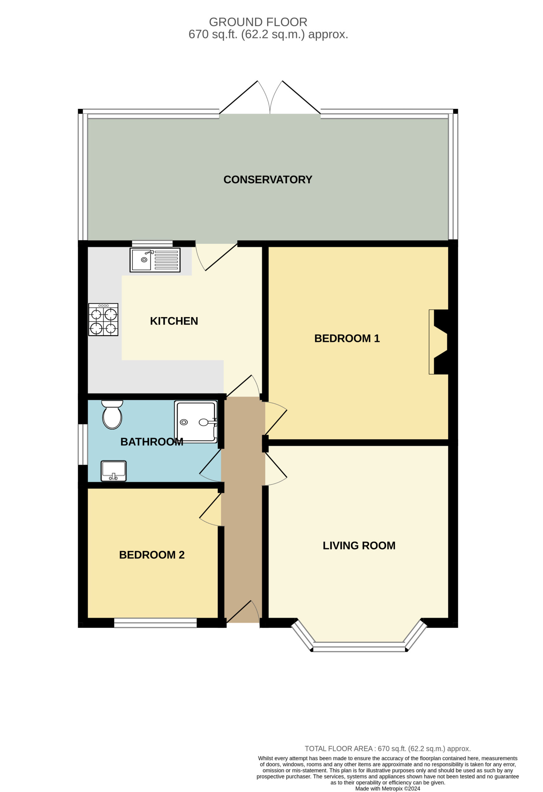 The property has two good size bedrooms, living room, seperate kitchen, shower room and large conservatory.