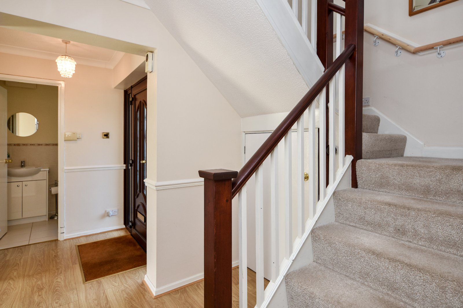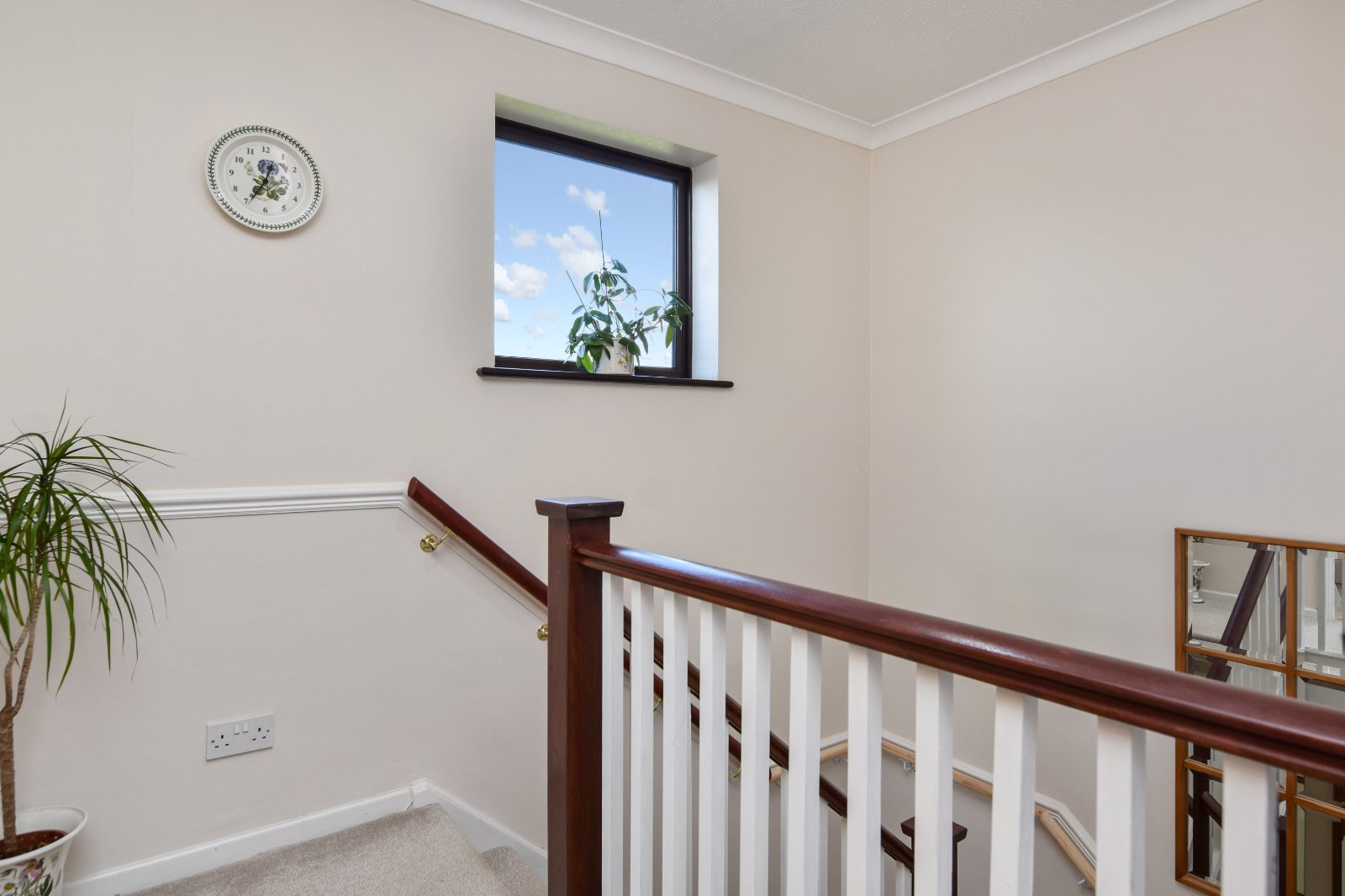 High level uPVC double glazed window to side aspect. Spindle balustrade. Radiator. Doors to Bedrooms and Bathroom. Further door to recessed airing cupboard with linen shelving. Dado rail. Coving to textured ceiling with access to loft space.