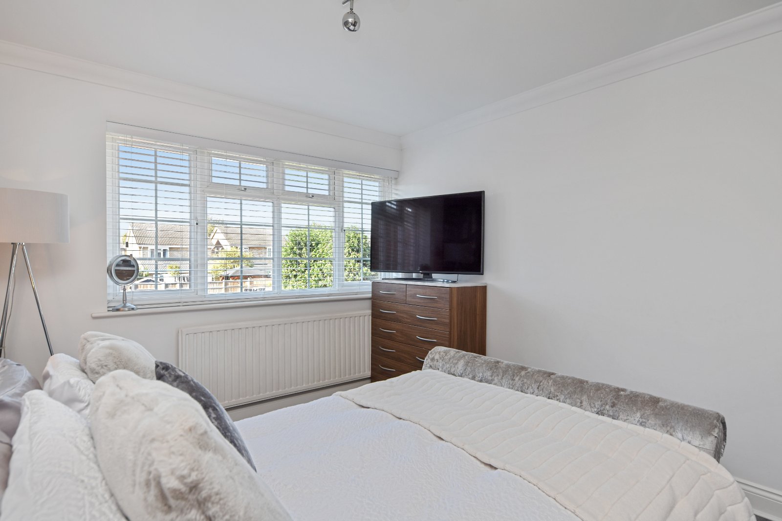 uPVC 'Georgian style' double glazed window to front aspect with views over the open Green. Radiator. Laminate wood effect flooring. Coving to smooth plastered ceiling.