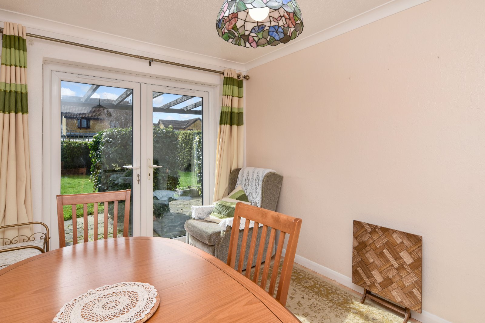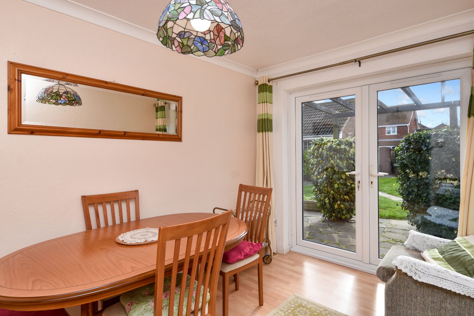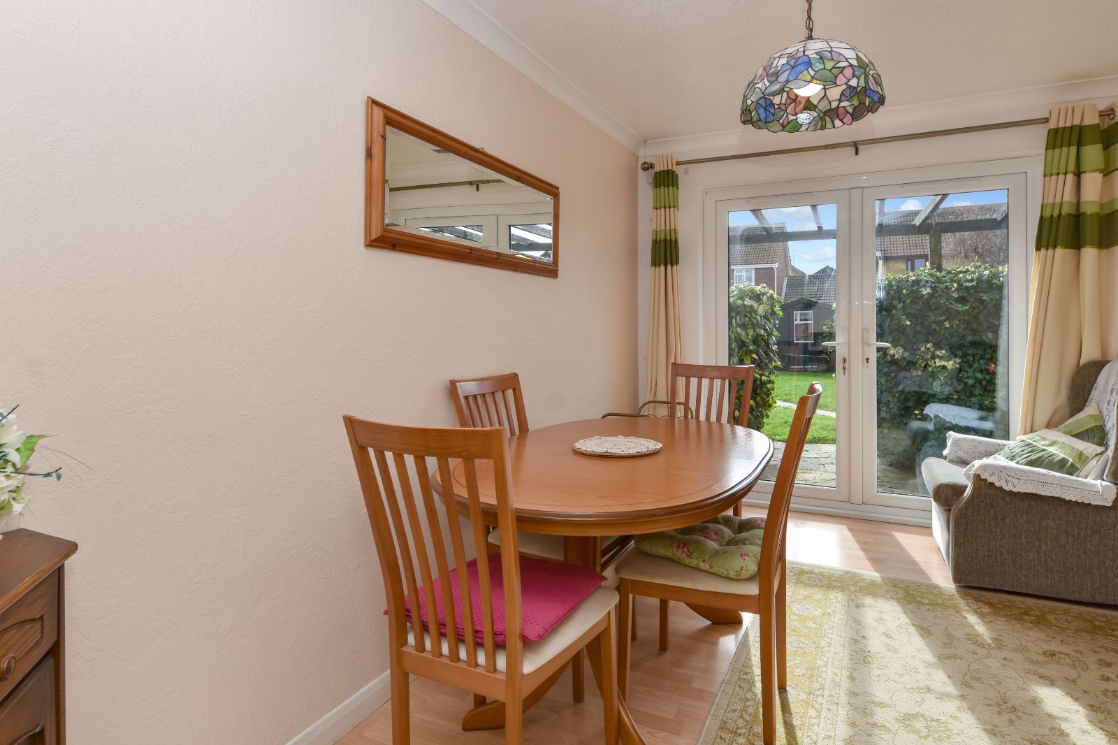 Separate Dining Room (which can serve as an optional third bedroom) boasts uPVC French doors that open to the rear garden