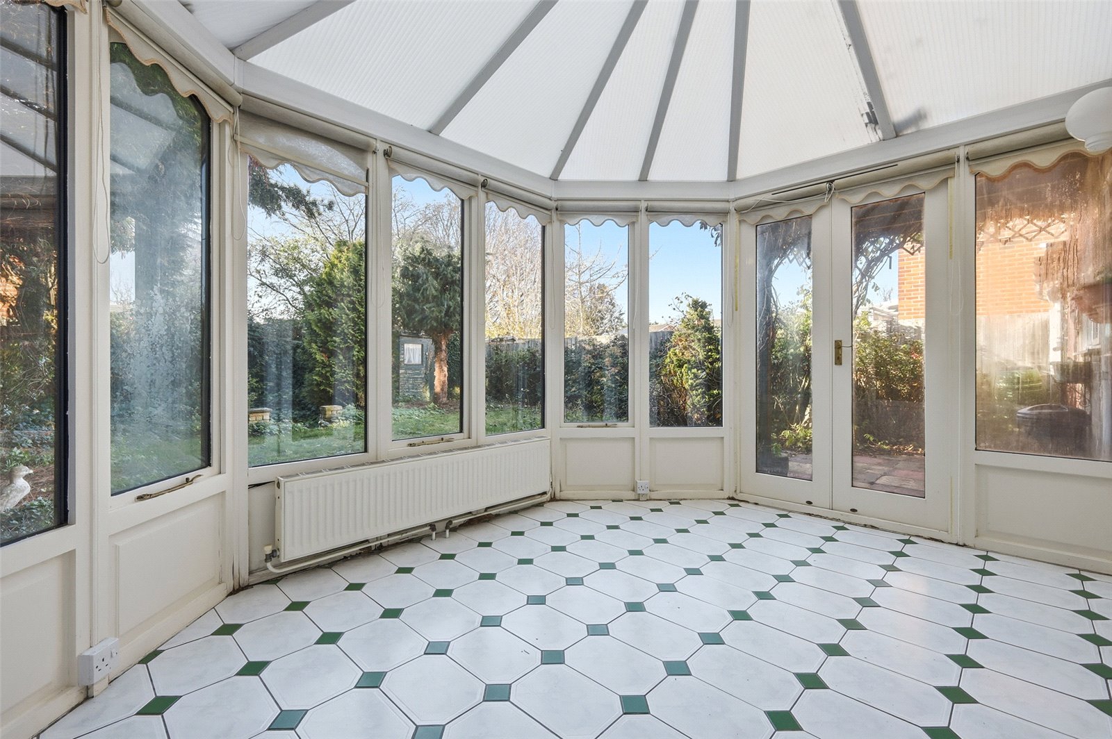 French doors to side leading to rear garden with windows to rear and both sides. Wall mounted radiator. Tiled floor. Wall mounted lighting.