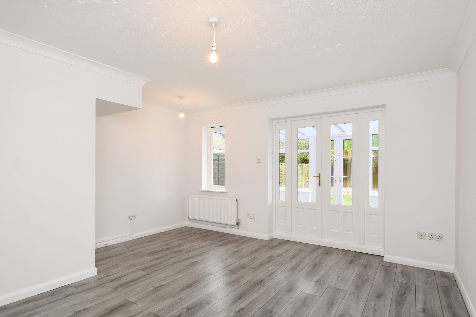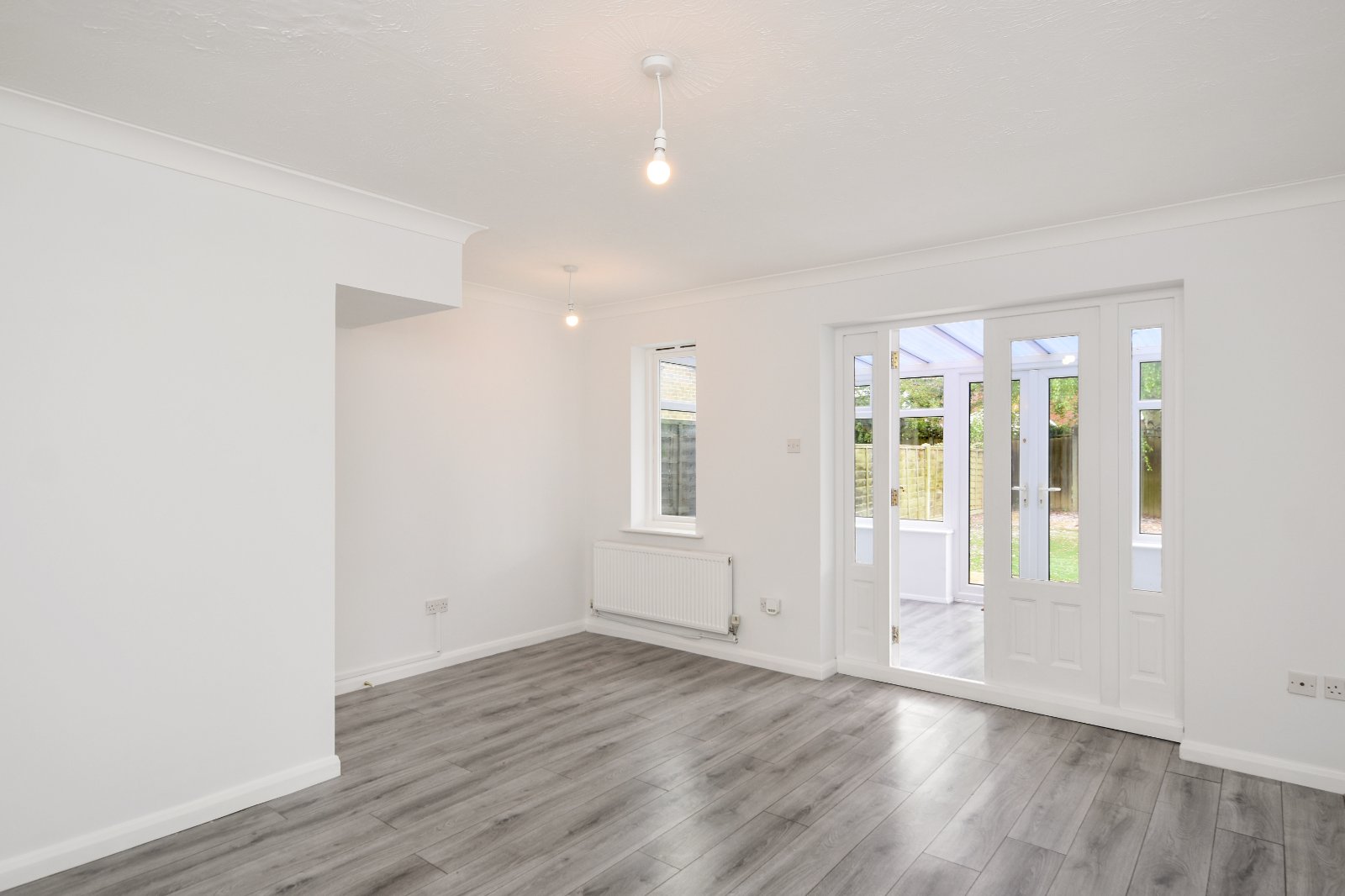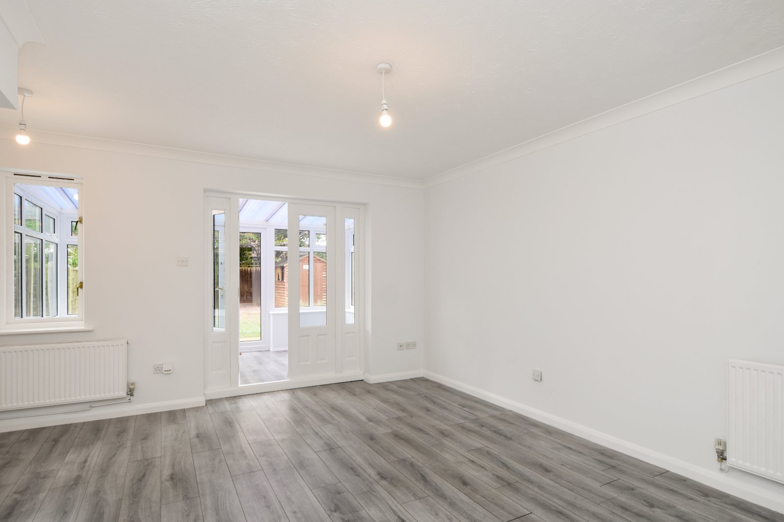uPVC double glazed windows to side and rear aspects with a pair of uPVC double glazed french doors opening onto the rear Garden. Wall light point. Laminate wood effect flooring. Radiator. Polycarbonate roofline.
