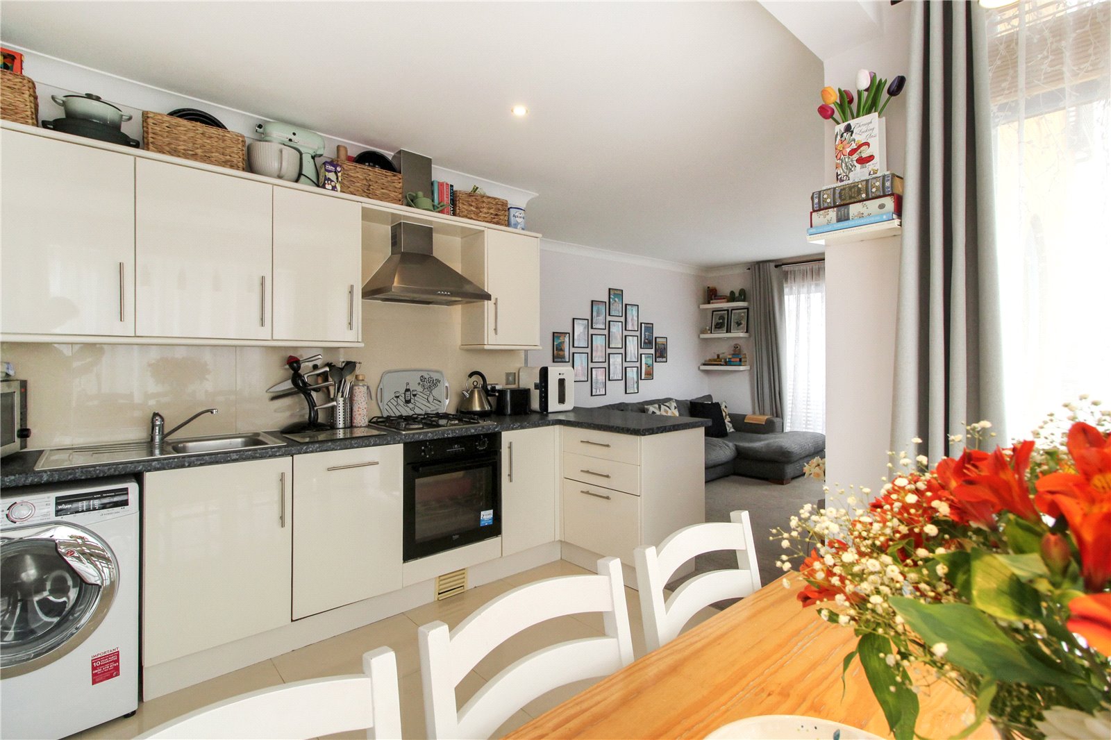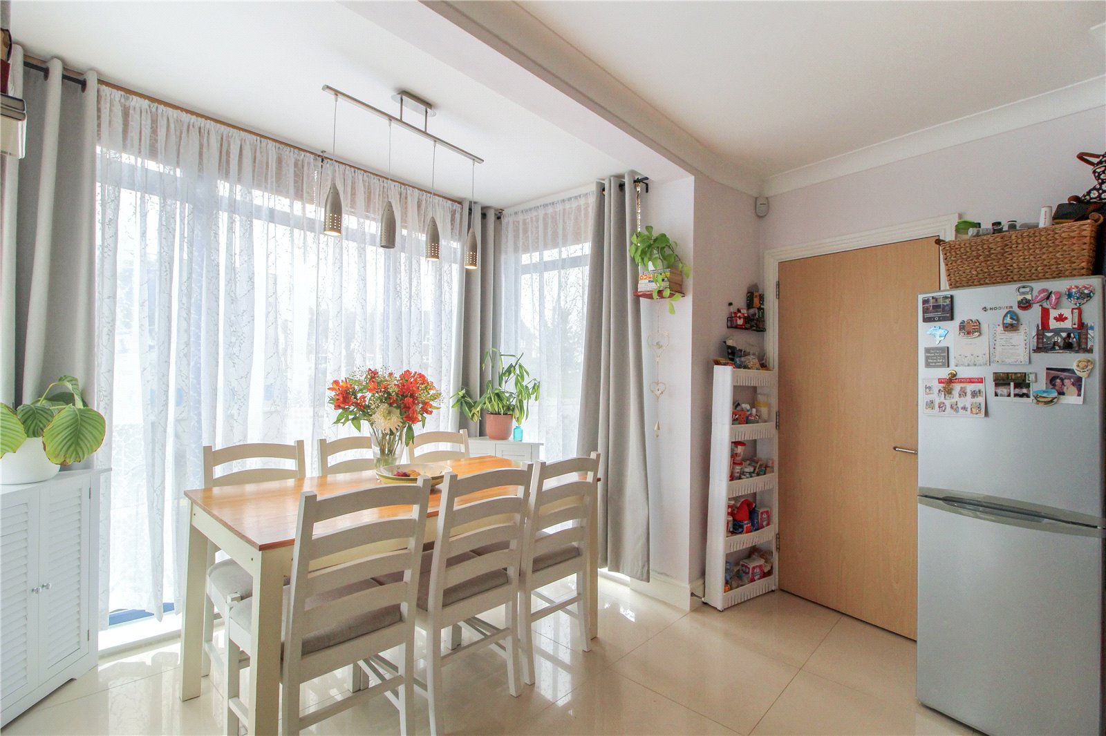 Double glazed bay window to side aspect, allowing space for dining table. Range of eye and base level stylish kitchen units with integrated stainless-steel sink with chrome mixer tap, dishwasher, gas oven and hob with chrome extractor fan, and under counter space for utilities. Tiles to floor, smooth plastered walls and ceiling, completed with coving and fitted spotlights.