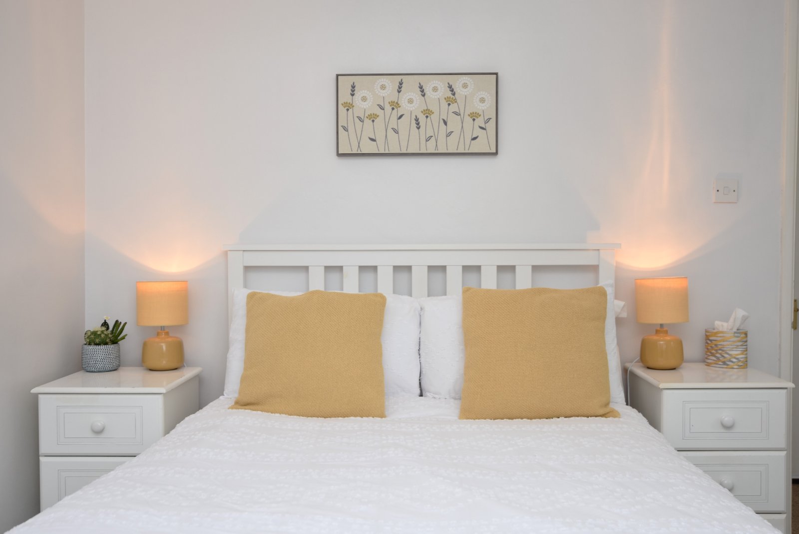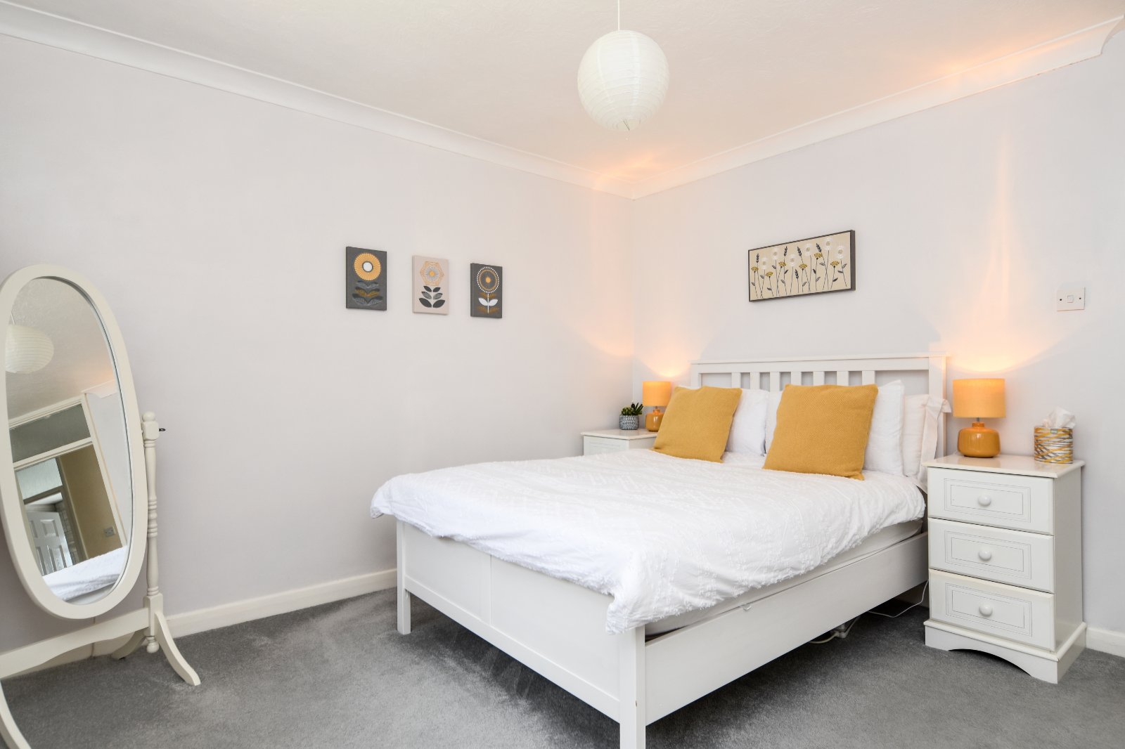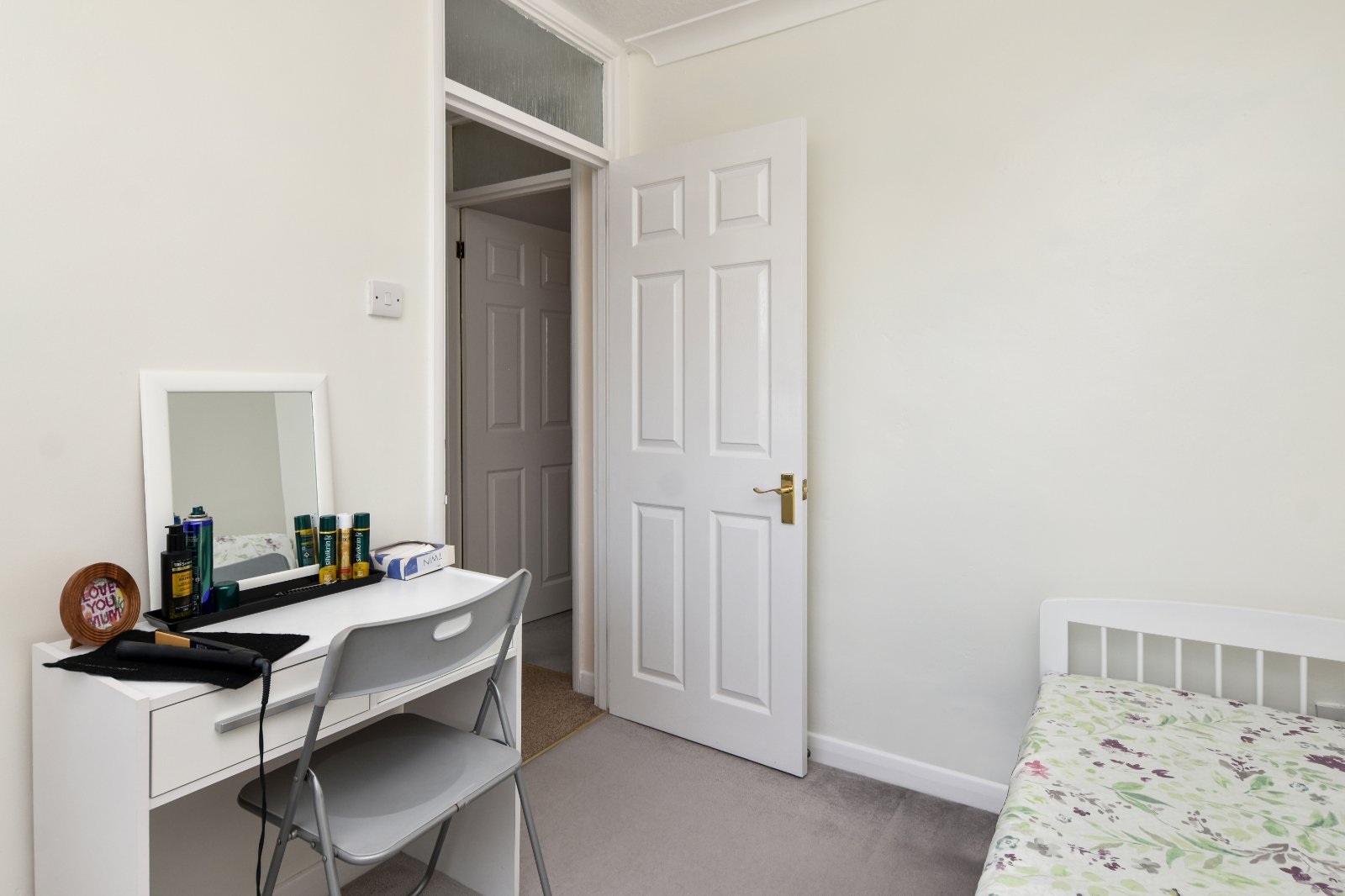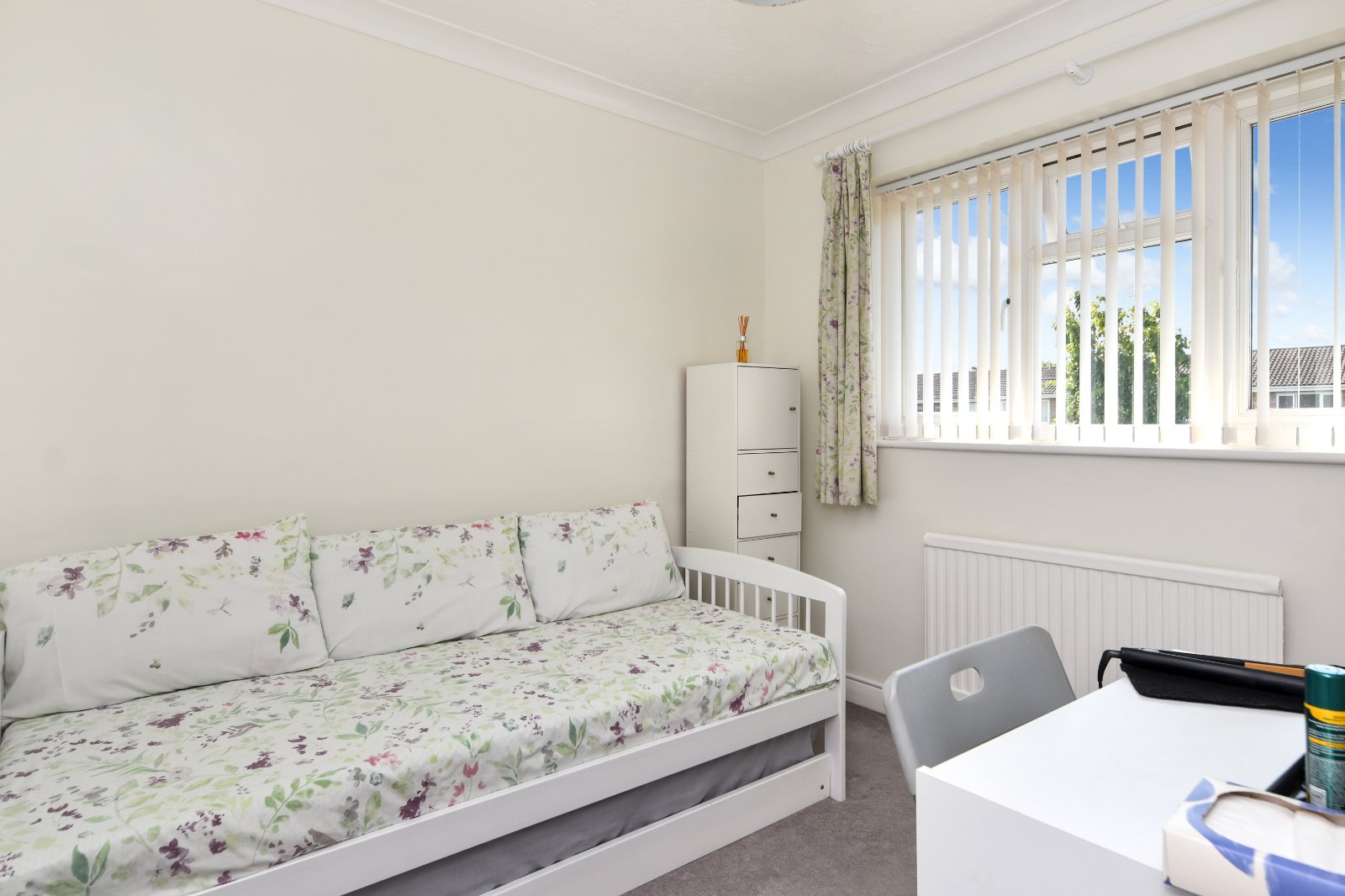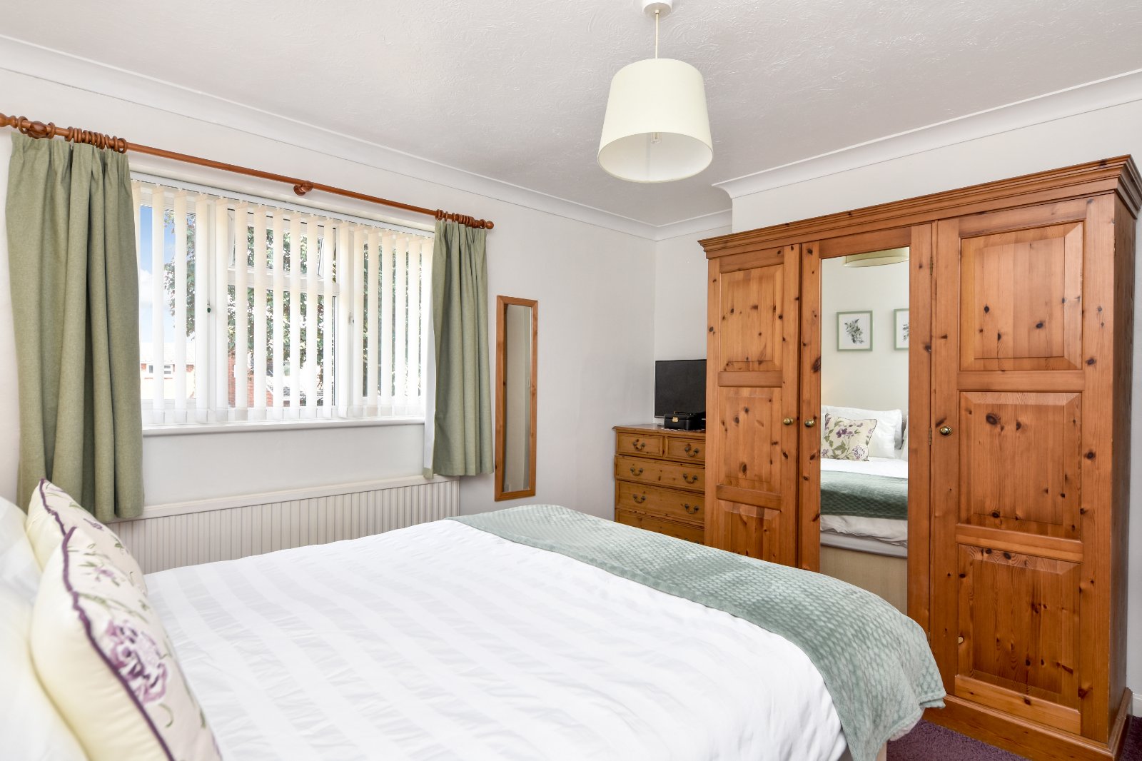 uPVC double glazed window to rear aspect inset with vertical blinds (to remain). Door to recessed wardrobe with hanging space and shelving. Radiator. Coving to textured ceiling.