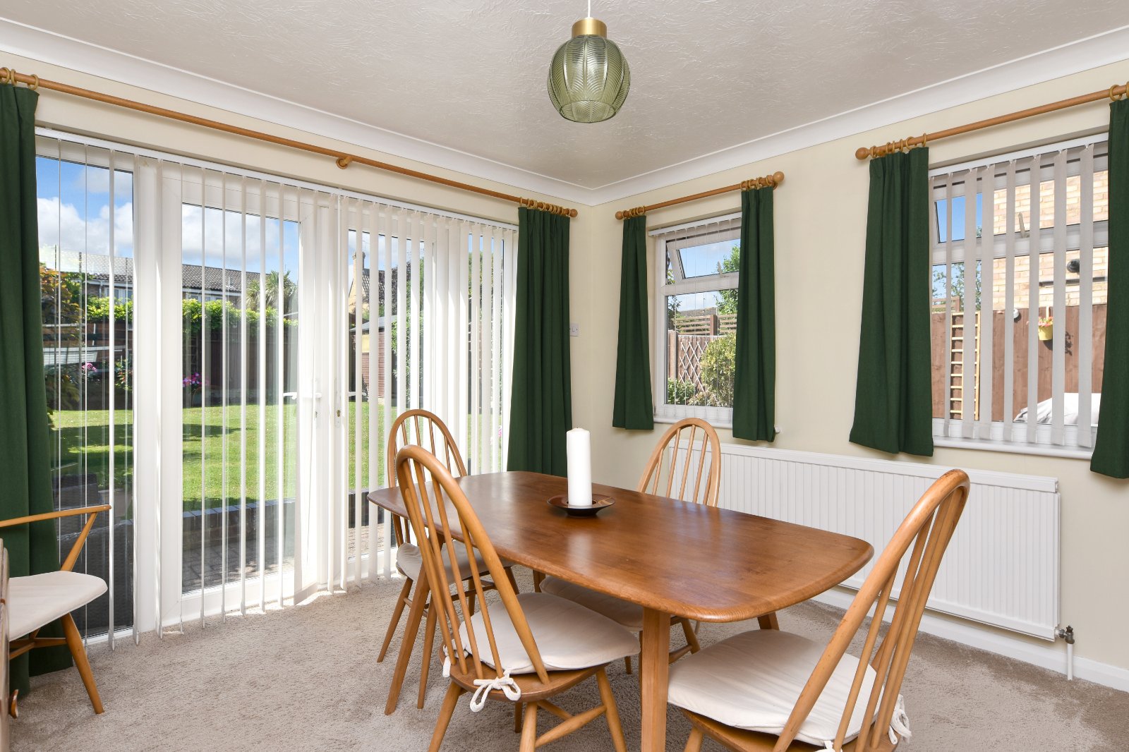 Pair of uPVC double glazed windows to side aspect inset with vertical blinds (to remain). uPVC double glazed french doors to the rear opening to the garden with matching side panels inset with vertical blinds (to remain). Radiator. Coving to textured ceiling.