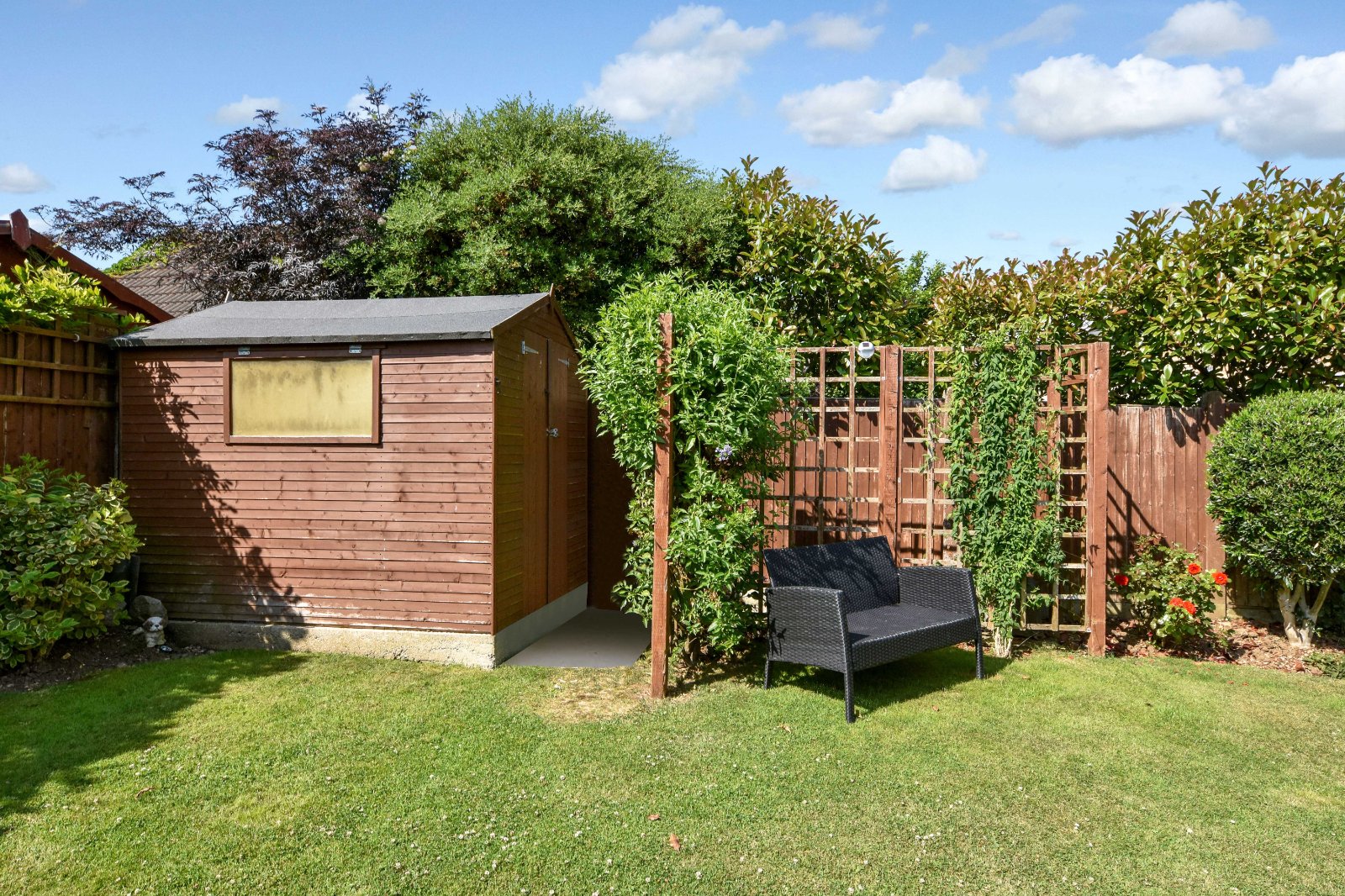 The beautiful, landscaped SOUTH facing rear Garden is approached block paved patio seating area with brick dwarf wall separating the remainder of the garden which is mainly laid to lawn with established trees and shrubs to borders Fencing to boundaries. To the rear of the garden there is a timber framed shed (to remain) with screening for the storage of bins. Outside water tap. Gated side access.