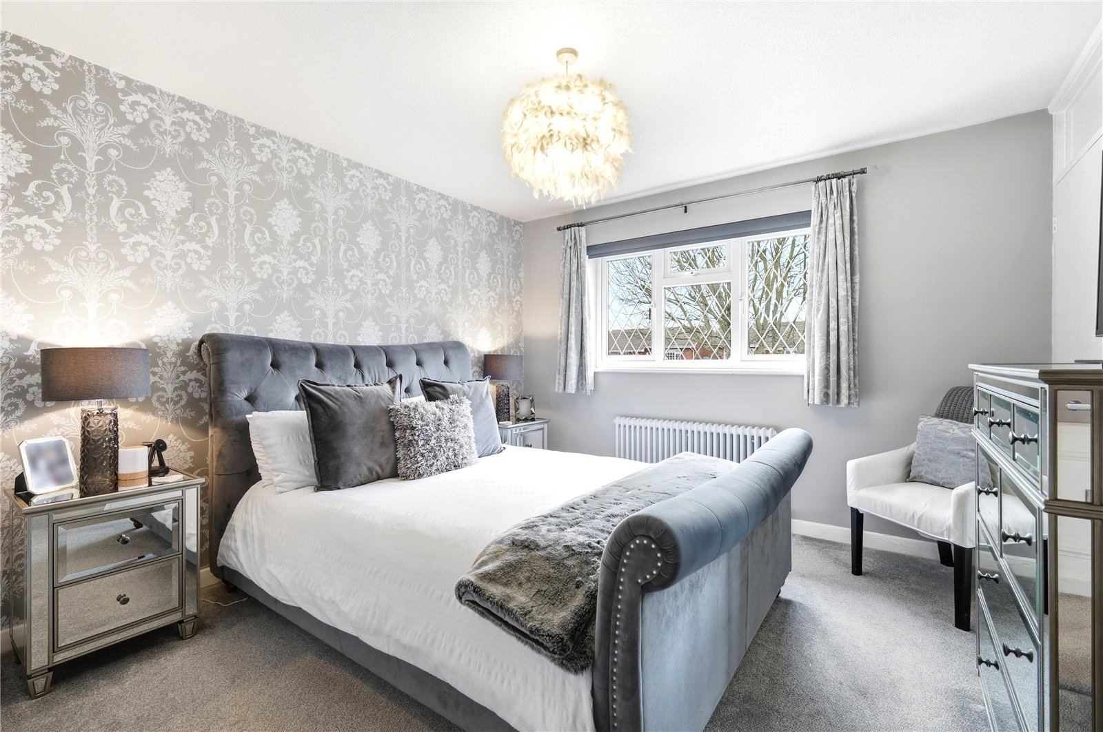 Including extensive range of fitted wardrobe units with Shaker style doors. UPVC double glazed leaded light window to rear overlooking rear garden. High level designer radiator. Coved cornice to smooth plastered ceiling.