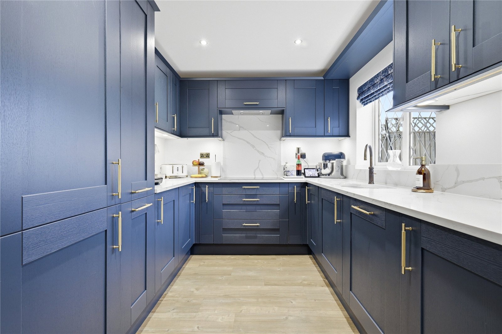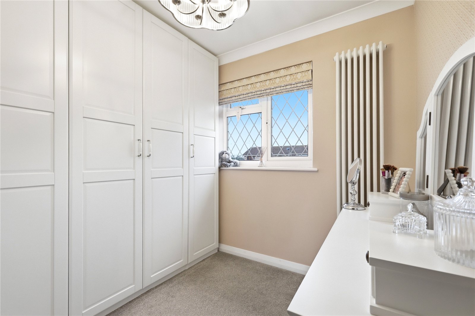 Including excellent range of wardrobe units with Shaker style doors. UPVC double glazed leaded light window to front. Wall mounted designer radiator. Fitted over stairs storage cupboard. High level skirting.