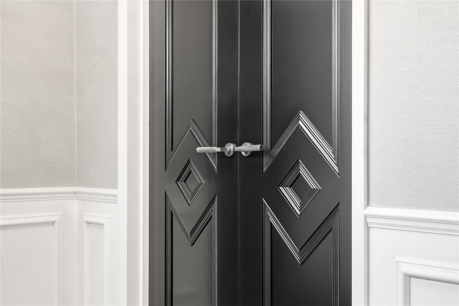 Designer doors with knurled handles lead off to rooms.