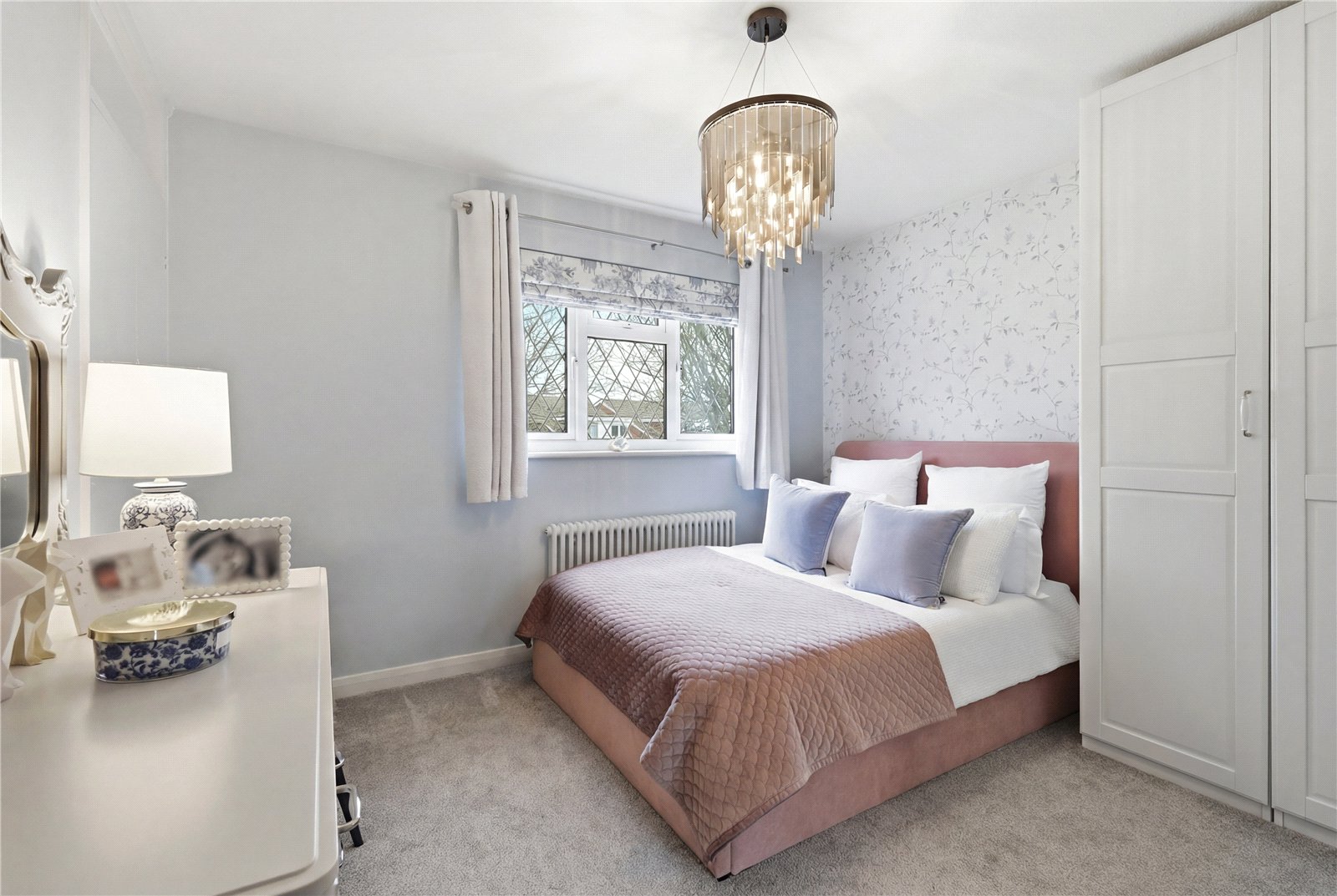 UPVC double glazed leaded light window to front. Wall mounted designer radiator. Fitted wardrobe unit. High level skirting.