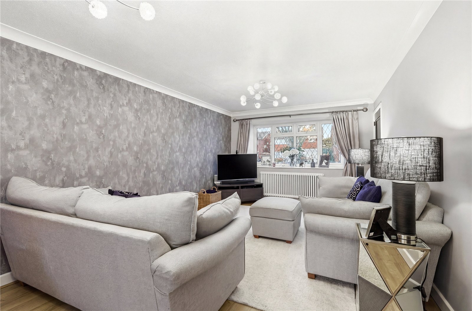 UPVC double glazed leaded light window to front. Wall mounted designer radiator. Wood effect Amtico flooring. Feature dado rail. Coved cornice to smooth plastered ceiling.