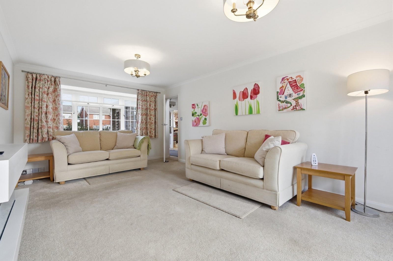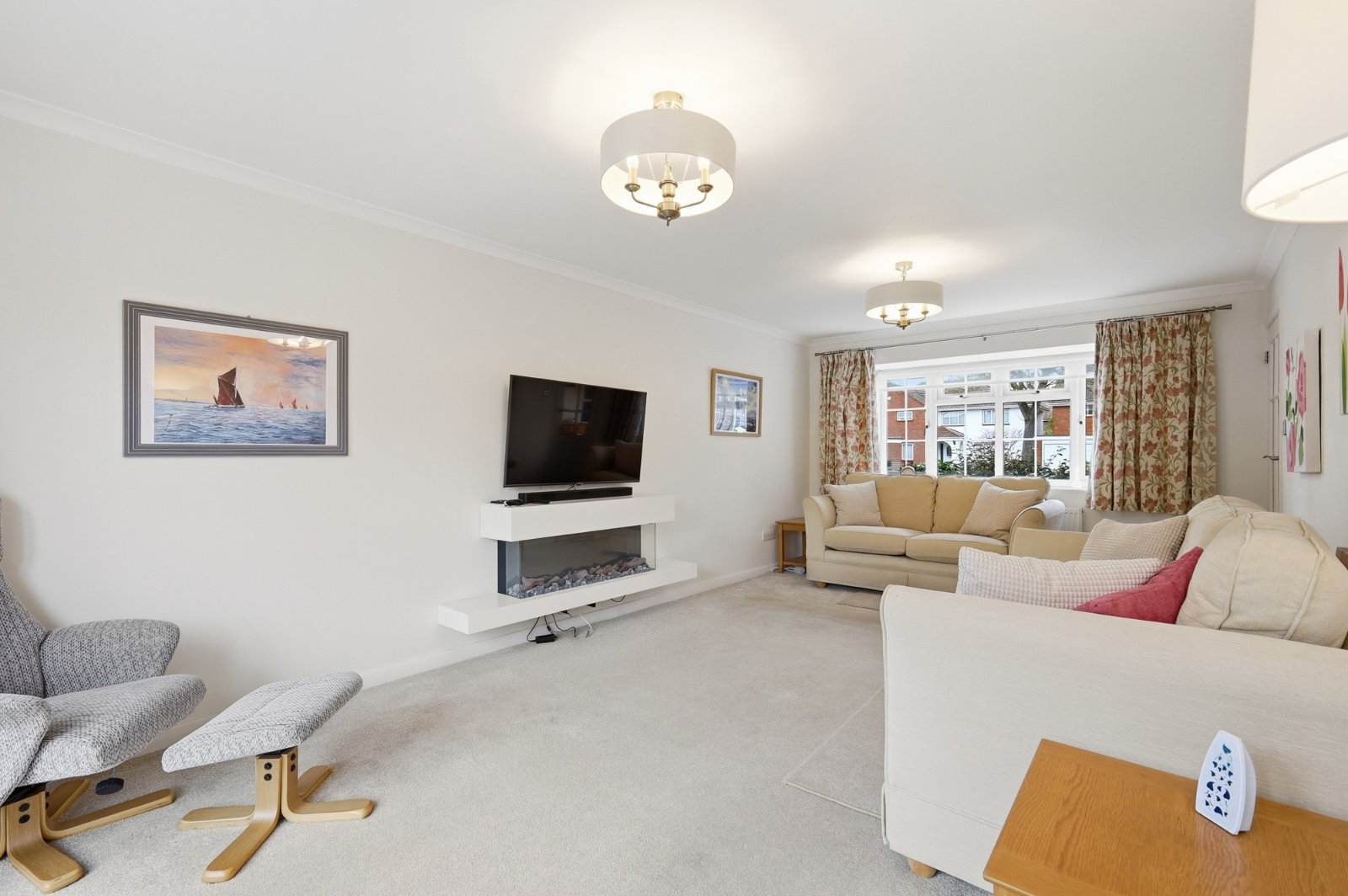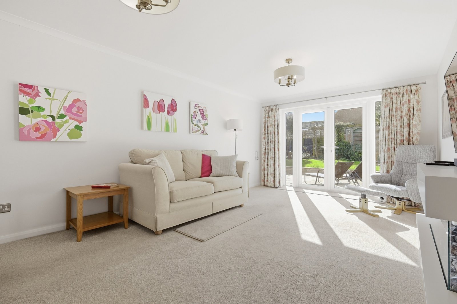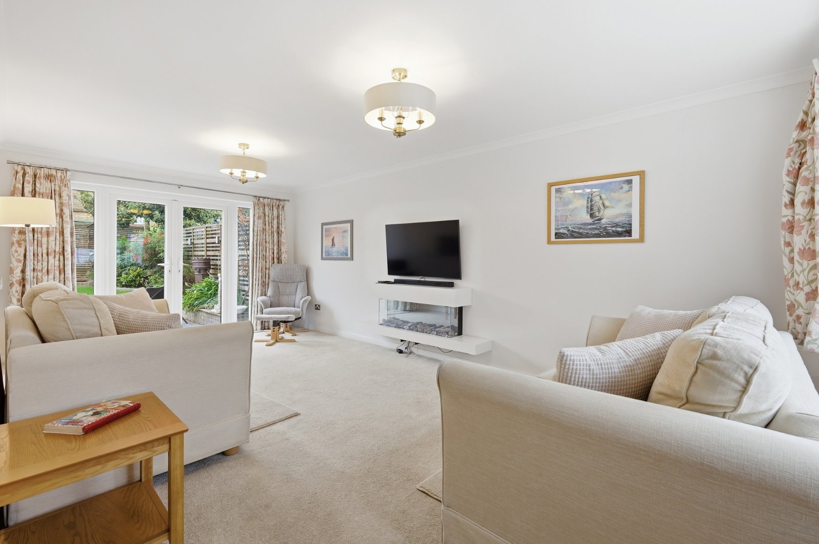 A dual aspect room with uPVC double glazed French doors giving access to the landscaped rear garden (with full height matching side panels) and uPVC double glazed multi-pane window to front. Contemporary log effect electric fire. Radiator, television aerial point, coved cornice to smooth plastered ceiling.