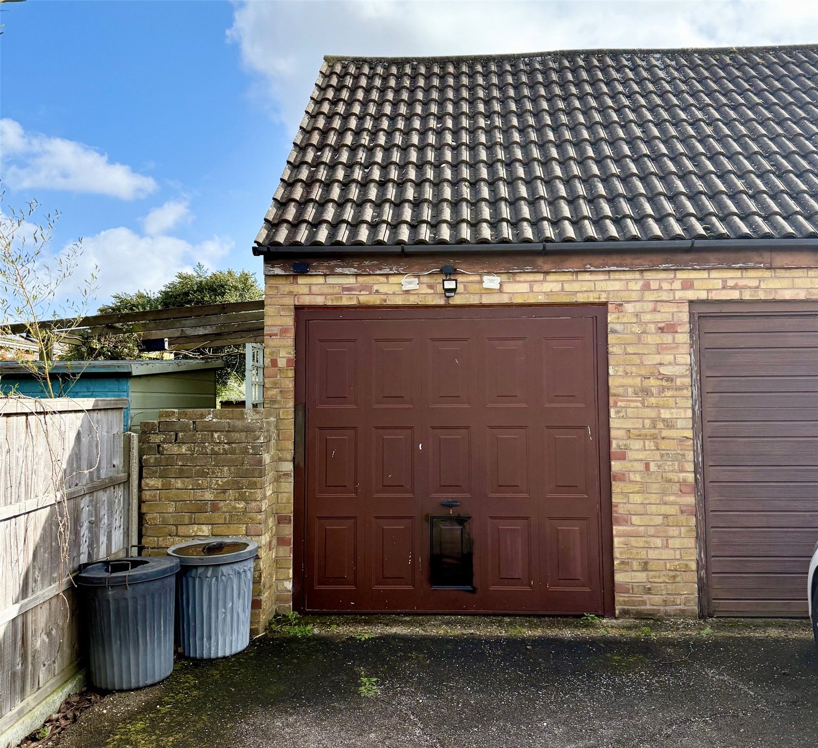 Up and over door to front. Power and light connected. Leadlight glazed door to side. Access to eaves storage space.