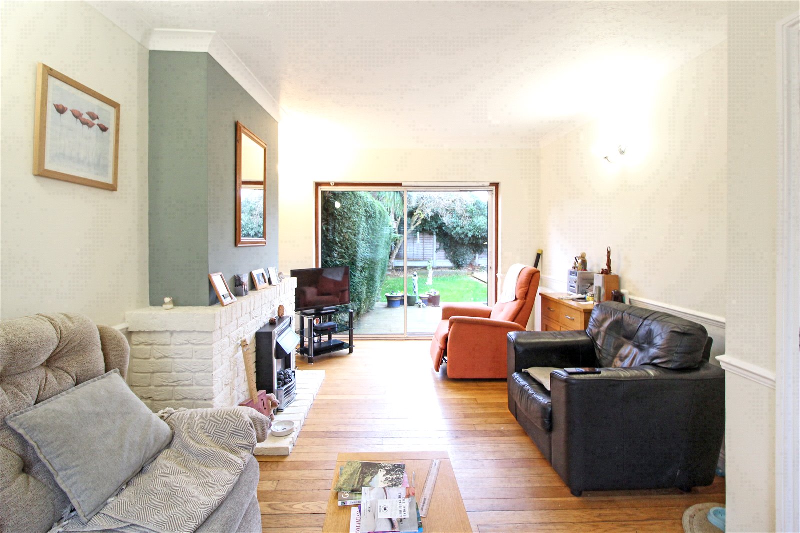 Bright and airy room with wooden floor, double glazed sliding doors to rear garden, radiator, built in electric fireplace, smooth ceiling., 2 x wall mounted lights.