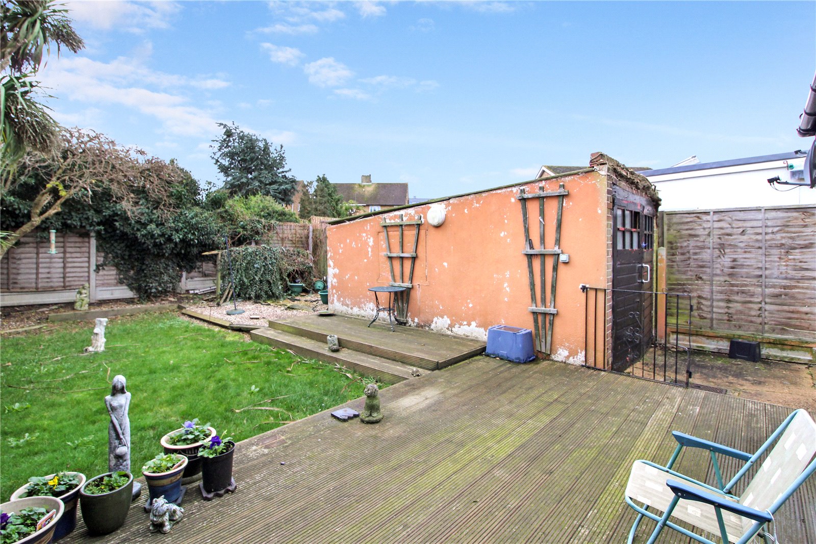 Rear garden which can be accessed via both the living room and kitchen, mostly laid to lawn, some decked area.