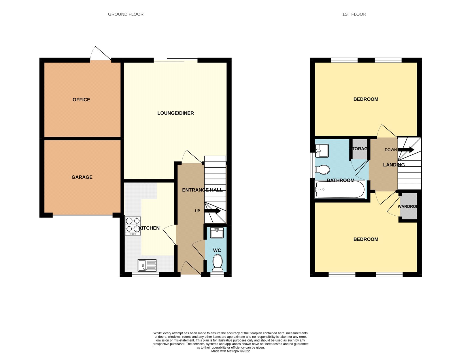 Up and over door to front, approached via driveway with space for one vehicle. Front storage space.