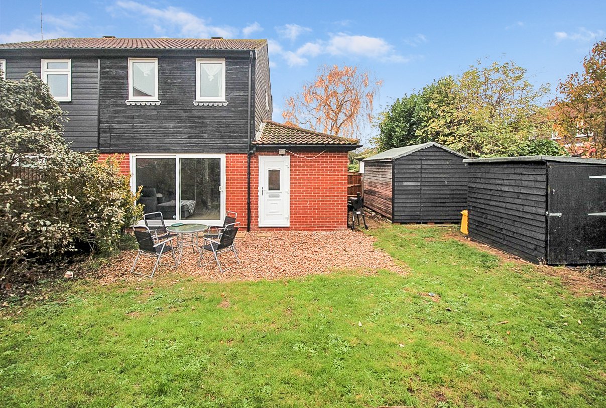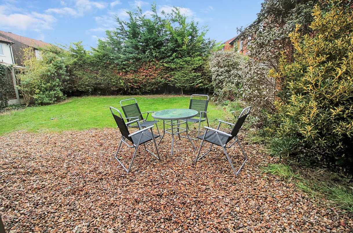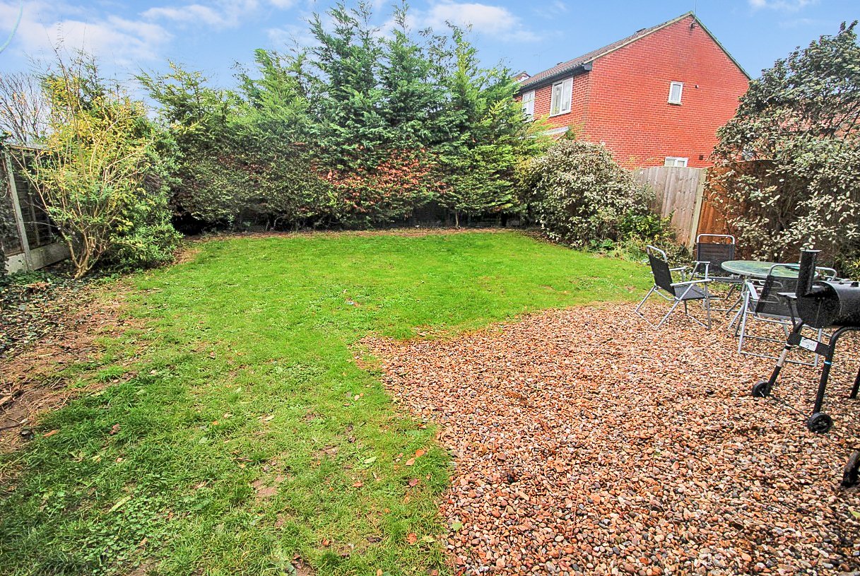 As previously mentioned, the property stands on a double-width plot, and has a wraparound rear garden commencing from the sitting/dining room with a shingled patio area. The remainder of the garden is laid to lawn, with fencing to both sides and rear boundary, and coniferous screening to the rear. Hardstanding for a large timber garden storage shed, and further hardstanding. A pair of timber gates give side access to the front of the property. Externally, a Obscure UPVC double-glazed door gives access to the attached Garage (now incorporating Home Office), as detailed above.