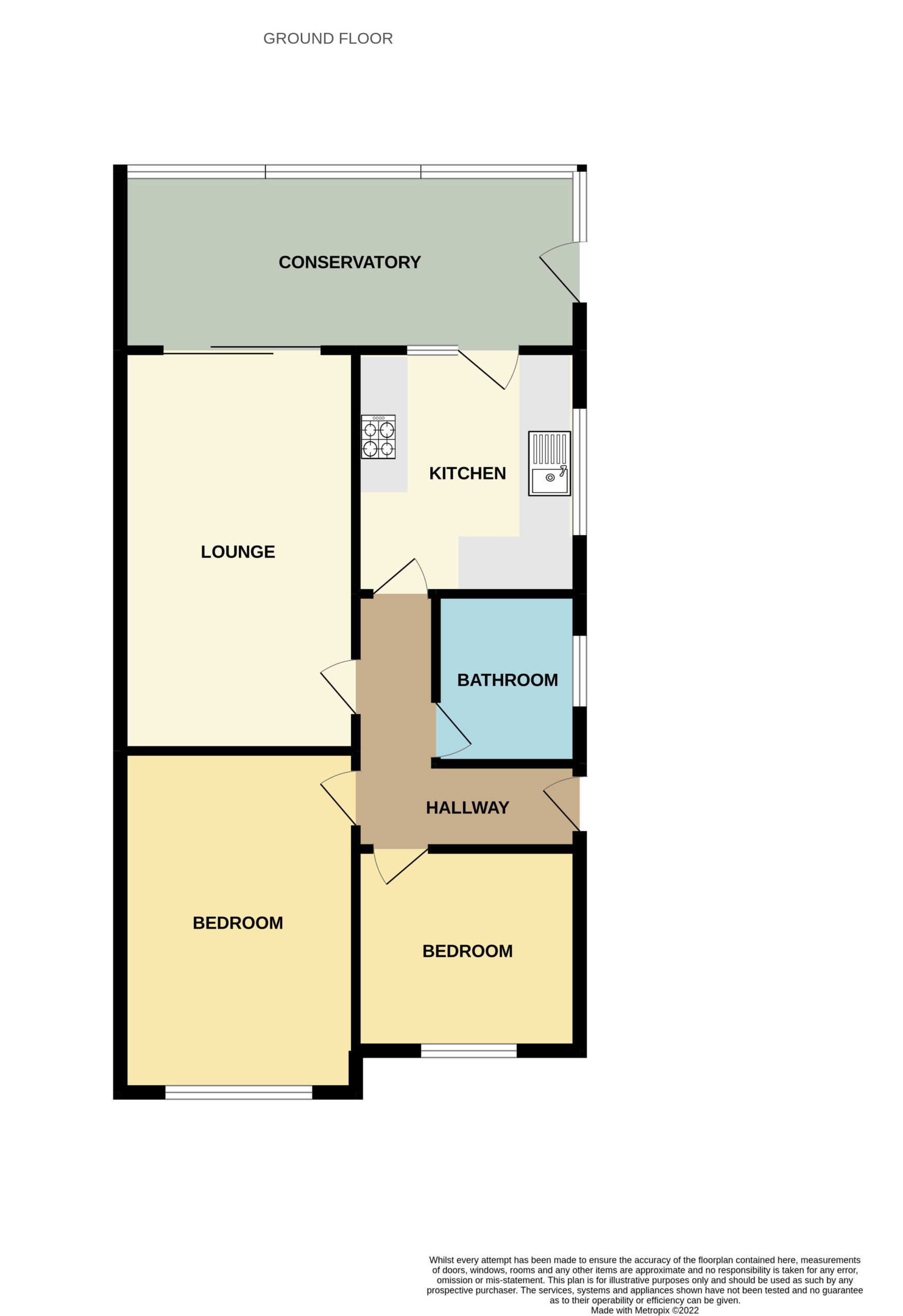Double glazed widows to rear and side aspect, half double glazed stable style door to side aspect, space for appliances and plumbing for washing machine.