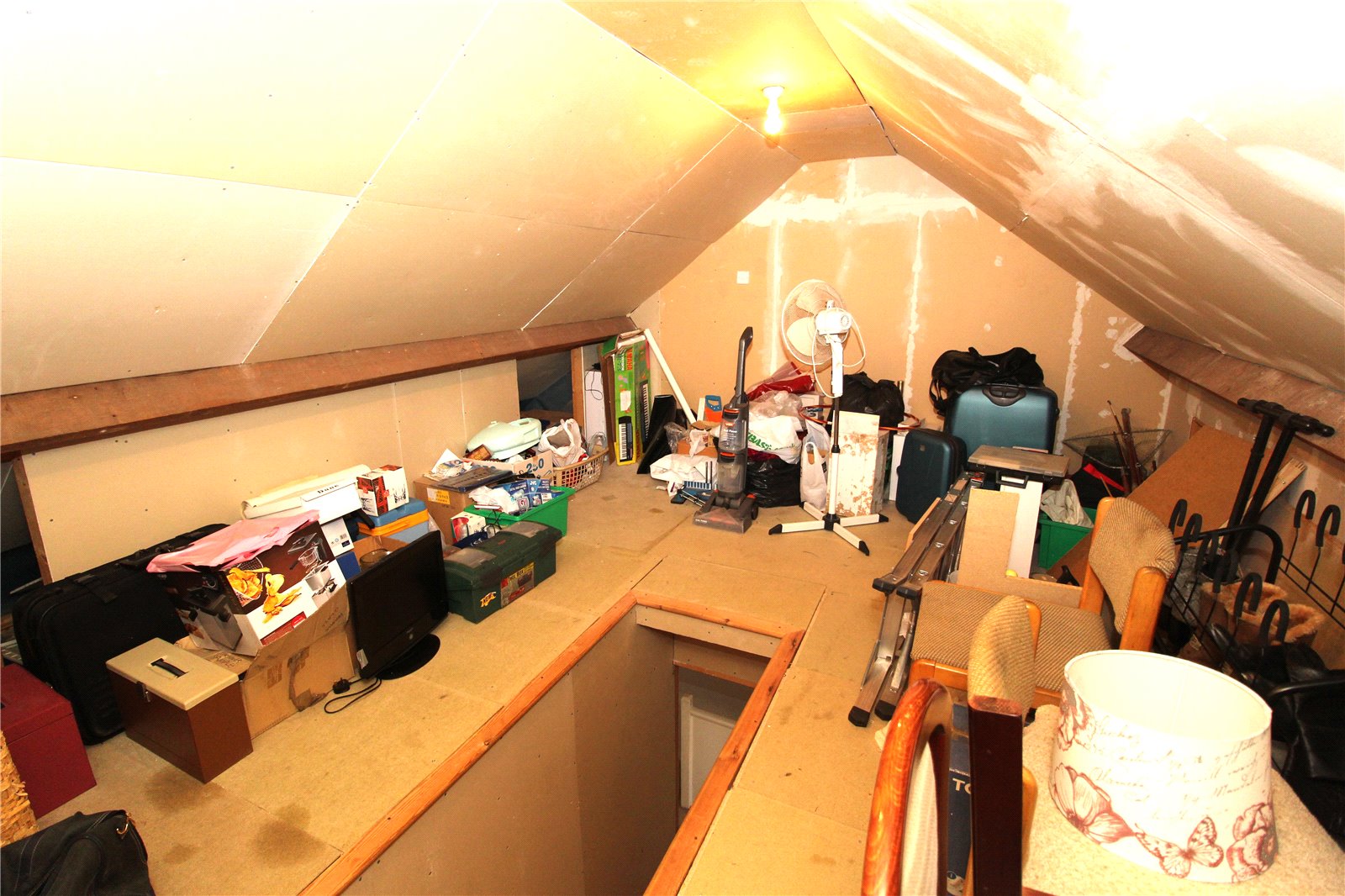 Fully boarded walls and flooring. Eaves storage areas. Power and lighting.