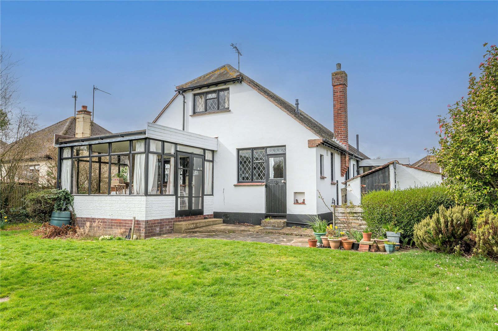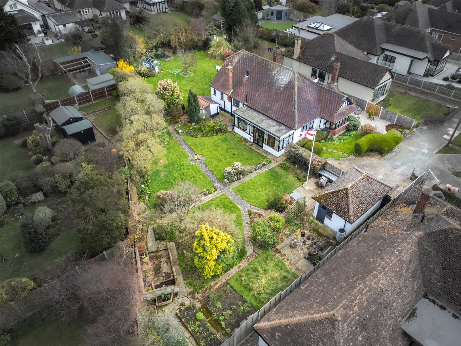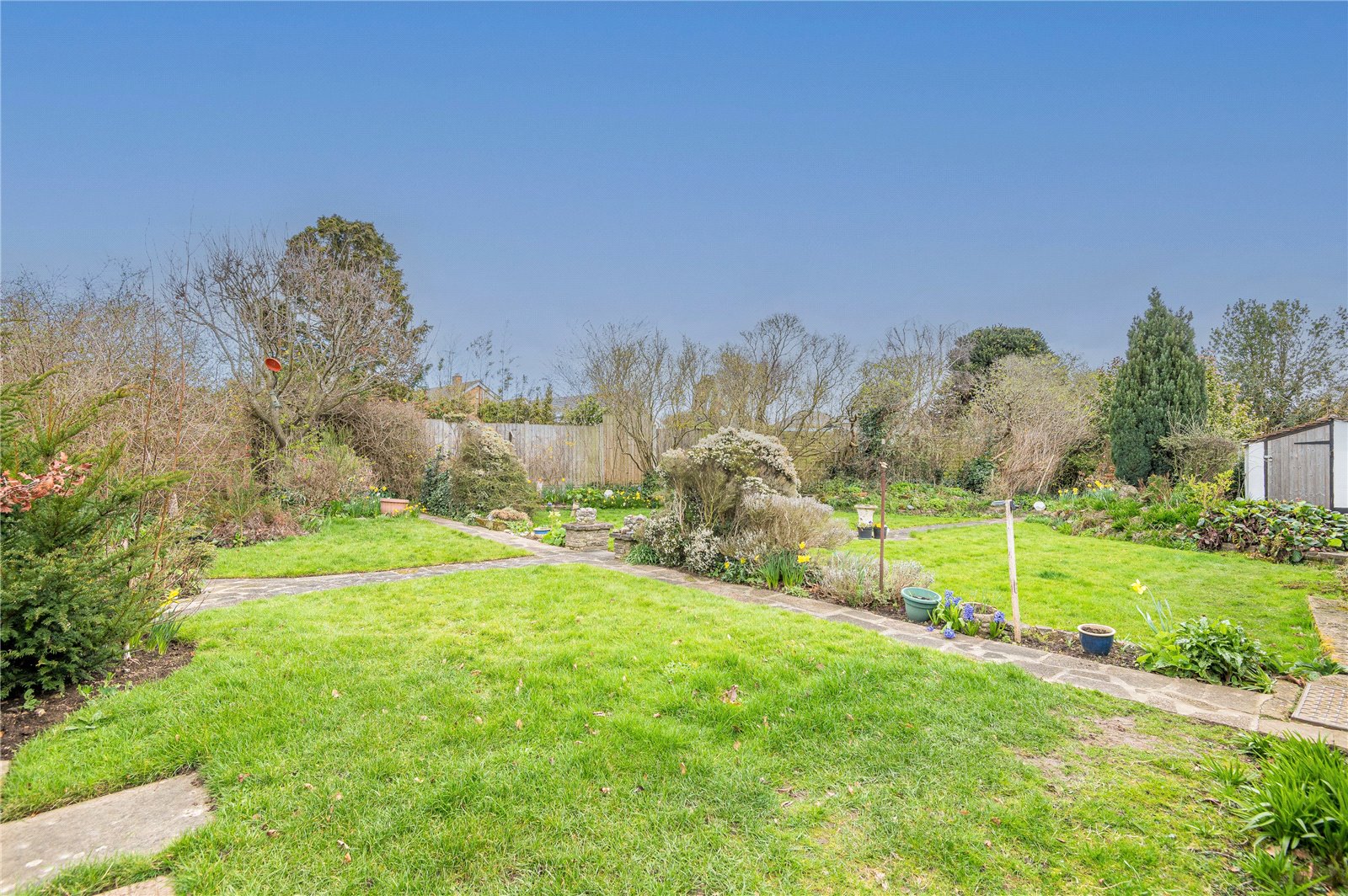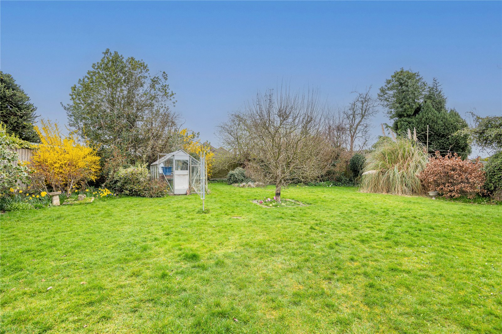 The property occupies a substantial internal corner plot which is beautifully established and very private. Laid mainly to lawn with well stocked beds and borders. Numerous mature trees and shrubs. Patio areas. Brick built store sheds. Cold water tap. Aluminium frame Greenhouse. Side entrances.