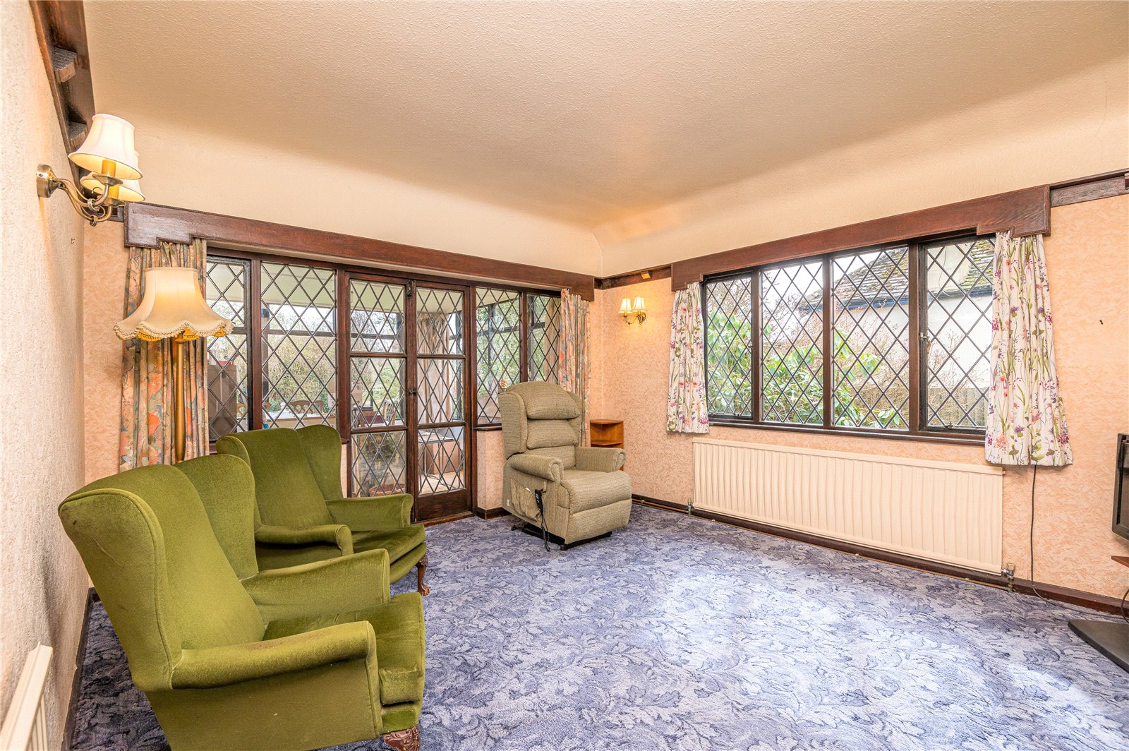 Good size “L” shape entrance hall. Delph shelf. Radiator. Built in storage cupboard. Door concealing staircase to first floor. Doors to accommodation.