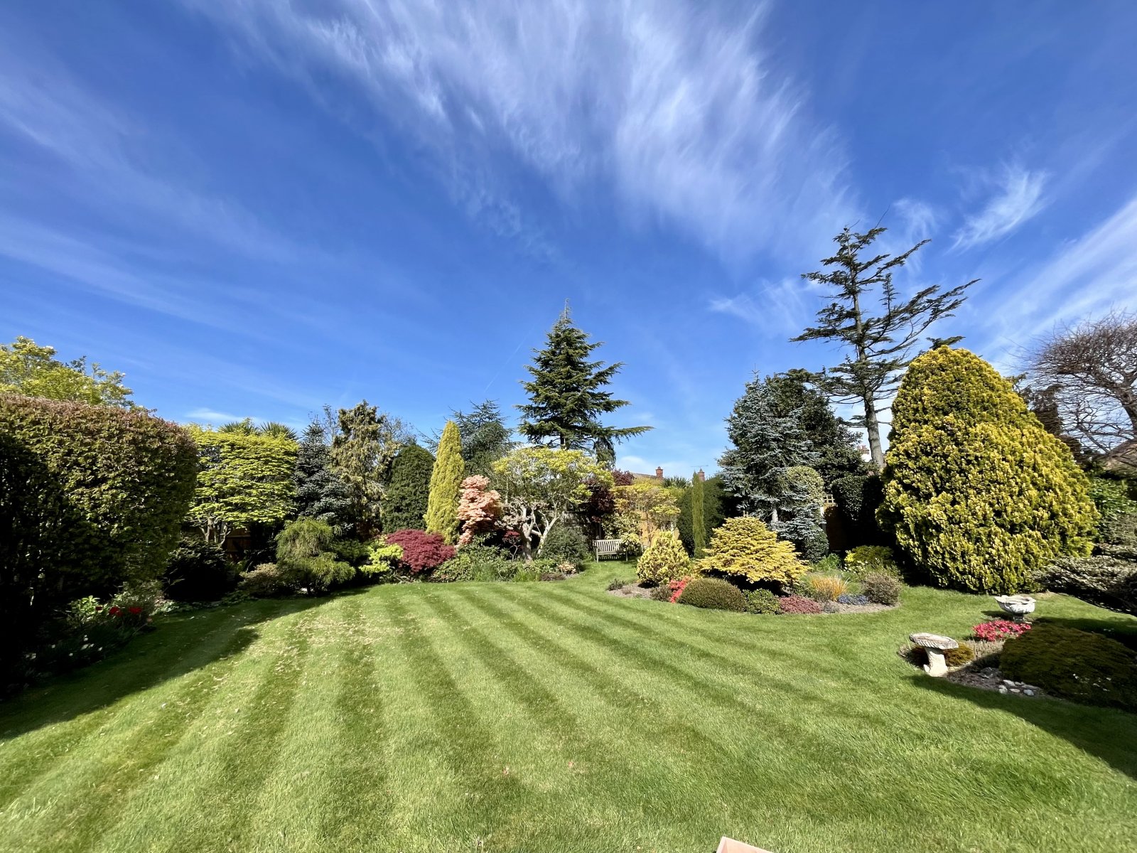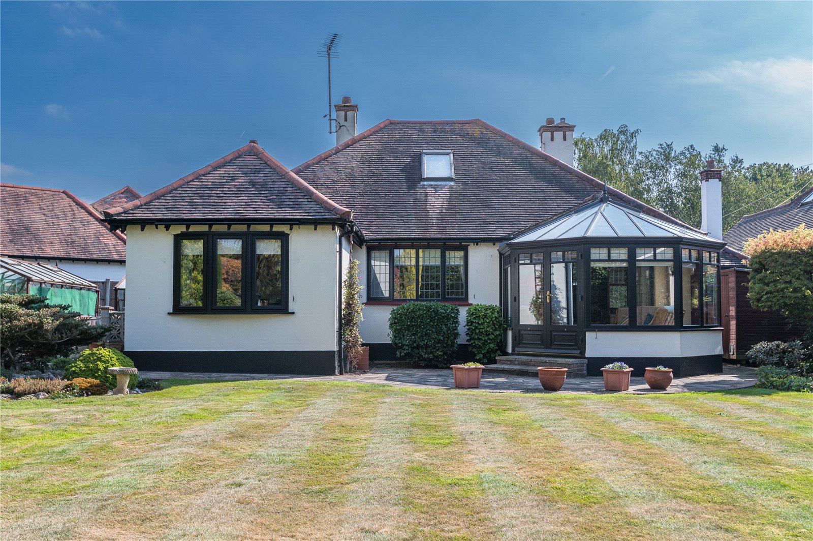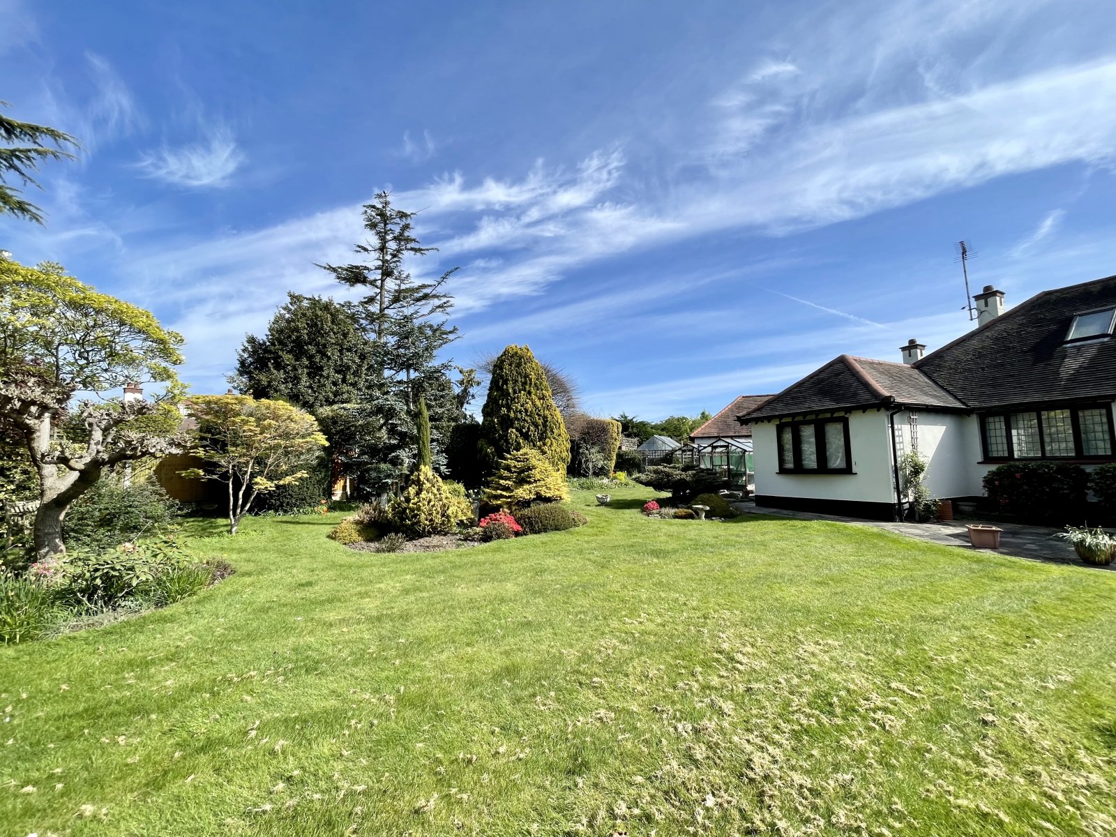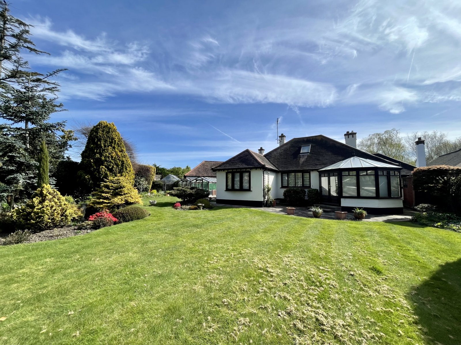 The property occupies a larger than average West backing internal corner plot with wonderful front, side and rear gardens. The large, 'Park like' west backing rear garden is beautifully established and unoverlooked. Laid mainly to lawn with planted beds and borders. Mature trees and shrubs. Extensive patio areas. Three timber framed greenhouses. Timber garden shed. Cold water tap. Outside lighting. Side entrance.