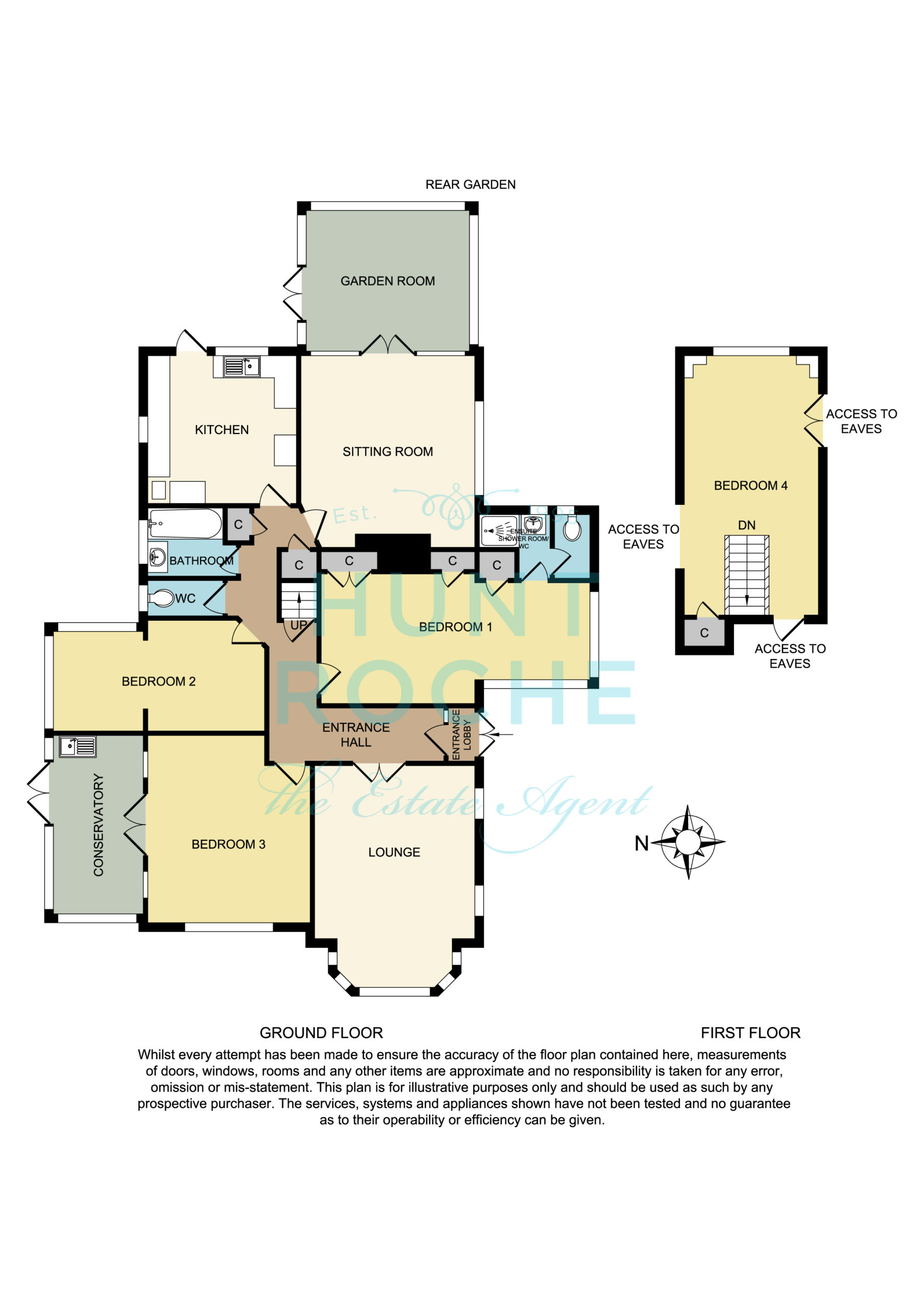 plus eaves storage cupboards. Window overlooking the rear garden. Two radiators. Door giving access to further large loft storage area with light.