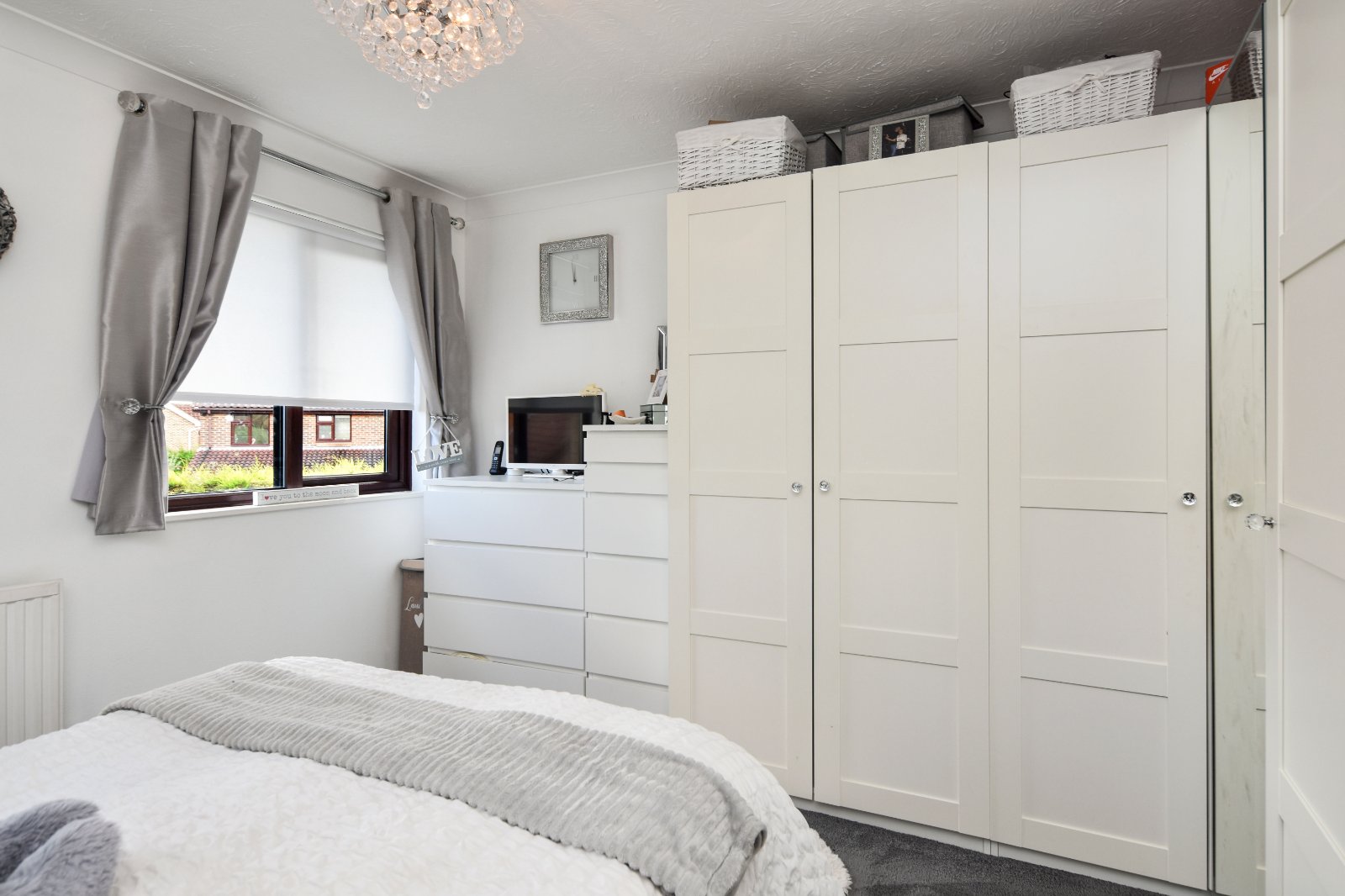 uPVC double glazed window to front aspect. Door to over stairs storage cupboard. Recessed area (formerly the built in wardrobe area). Radiator. Coving to smooth plastered ceiling.
