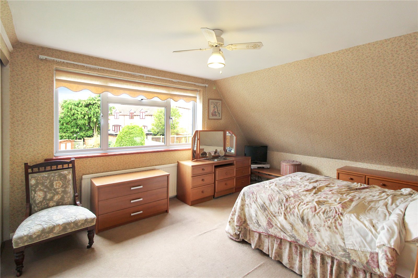 Double glazed window to rear aspect with view of the garden. Carpet to floor, skirting, radiator and floor to ceiling built-in wardrobe with sliding doors. Wallpapered walls, smooth plastered ceiling, competed with ceiling light.