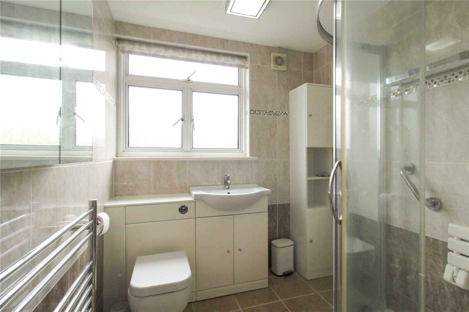 Double glazed obscure window to side aspect. Three-piece bathroom suite comprising of a low level wc and wall mounted hand wash basin with chrome mixer taps and vanity unit, walk-in shower cubicle with chrome shower attachment. Tiles to floor and all walls, smooth plastered ceiling, completed with ceiling light.