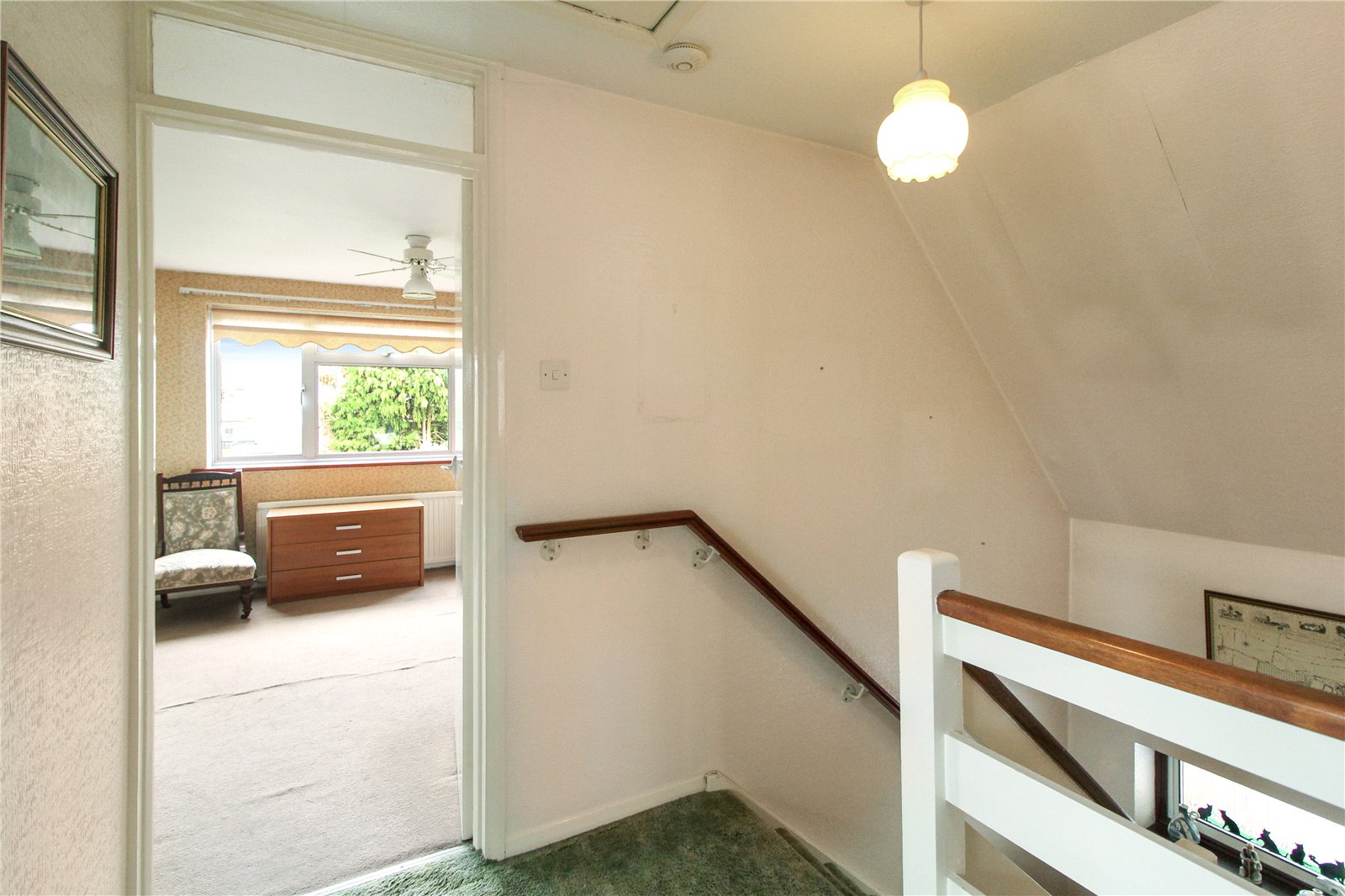 Stairs from the entrance hall leading up the first floor landing. Carpet to floor, skirting, storage cupboard. Wallpapered walls, smooth plastered ceiling, completed with loft hatch and ceiling light. Doors leading to: