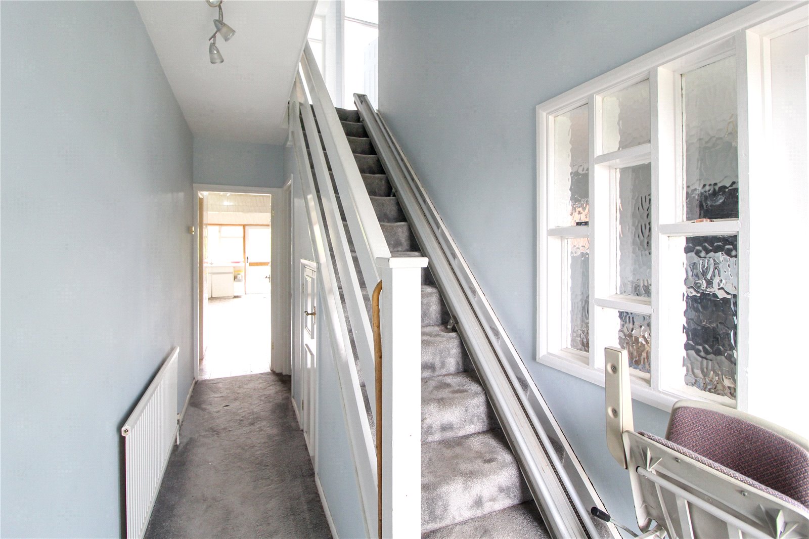 Enter through composite front door into spacious entrance hall, with carpet to floor, smooth ceiling, ceiling light, radiator, stairs to first floor and doors leading to ground floor rooms.