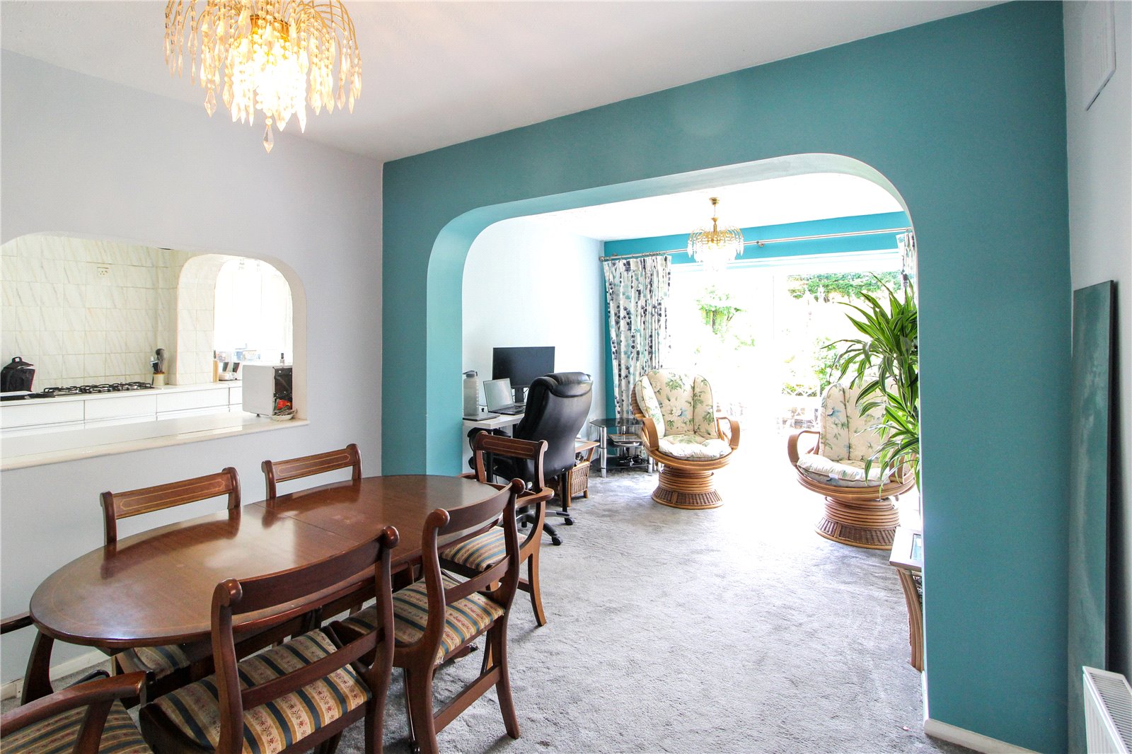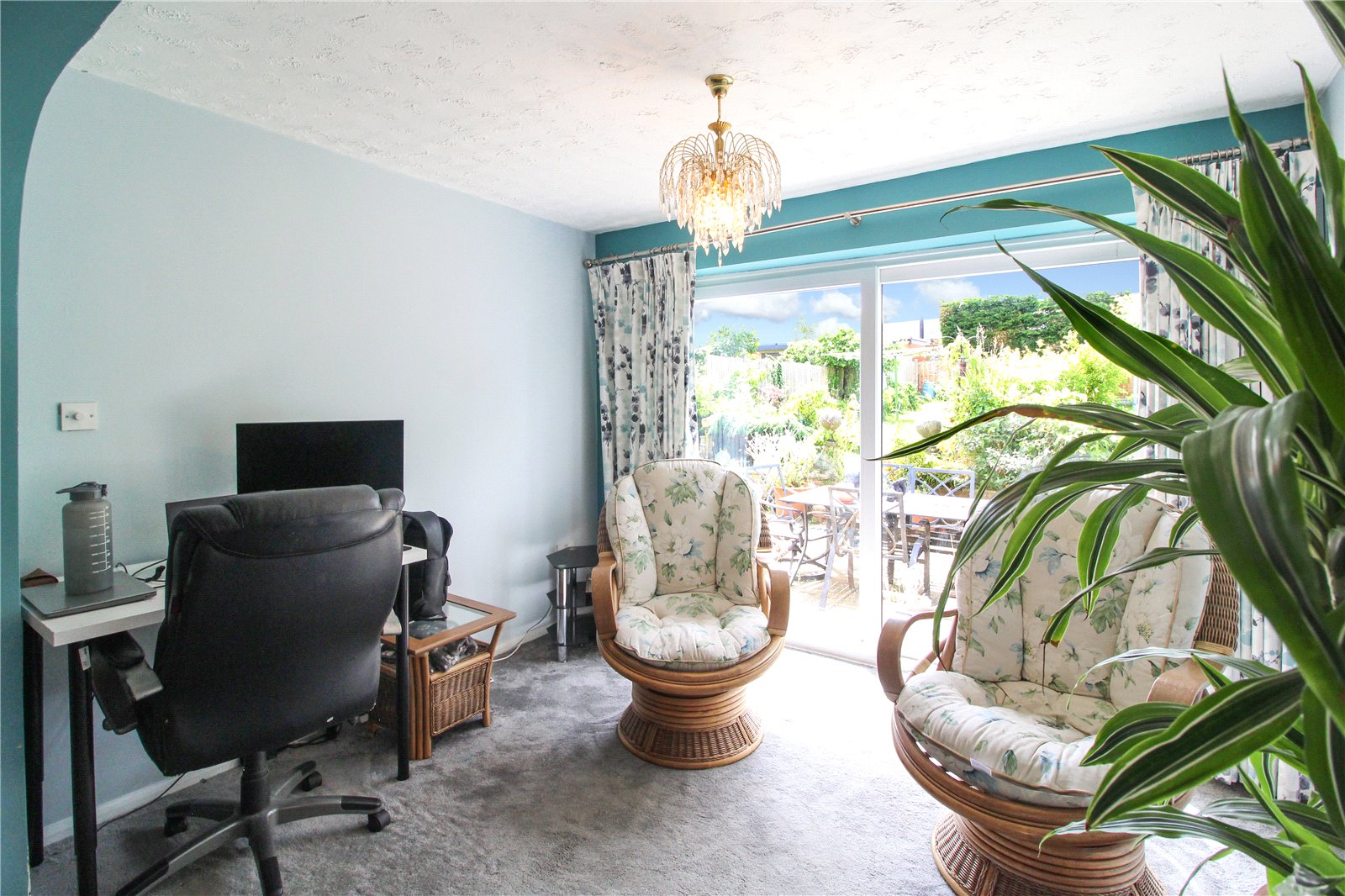 Carpet to floor, two ceiling lights, smooth ceiling, radiator, double glazed window to side aspect, double glazed sliding doors to rear garden.