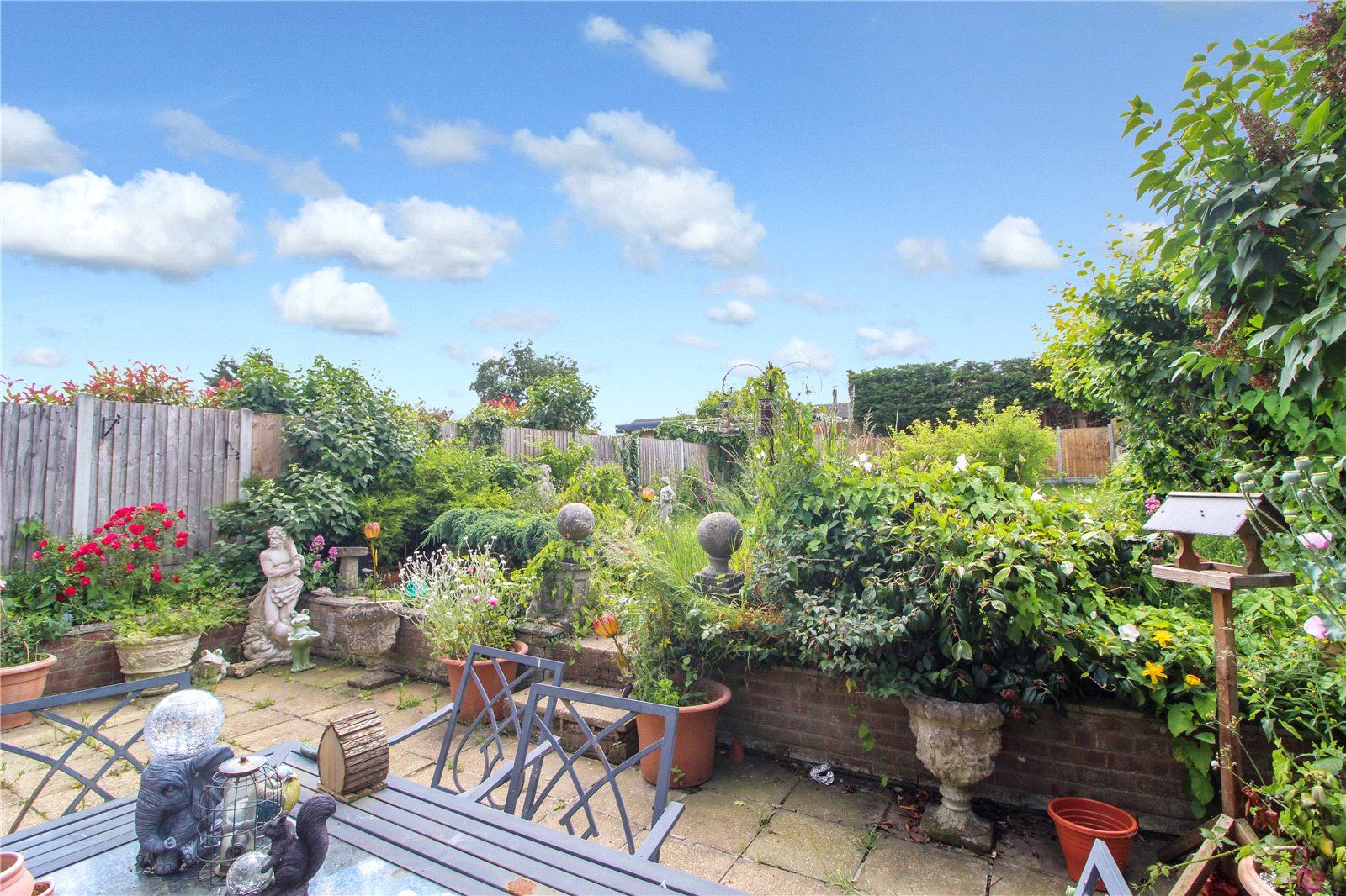 Good size, south facing rear garden, commencing with paved area, then leading to lawn area, side access.