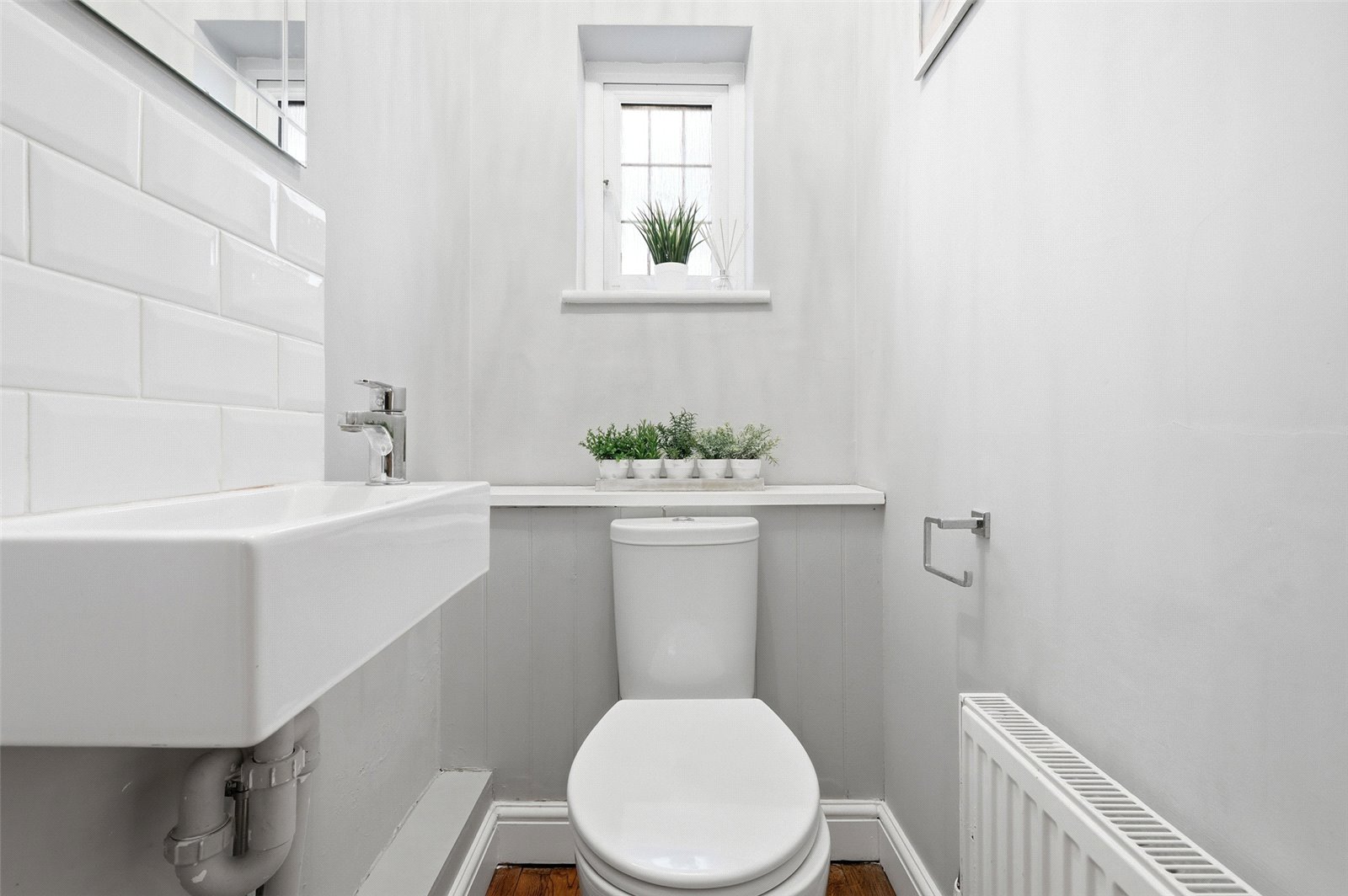 UPVC double obscured glazed window to side. Fitted with a modern two piece suite comprising low flush WC and wall mounted wash basin with mixer tap. Tiled splashback. Wall mounted radiator. Wood block flooring. High level skirting. Smooth plastered ceiling.