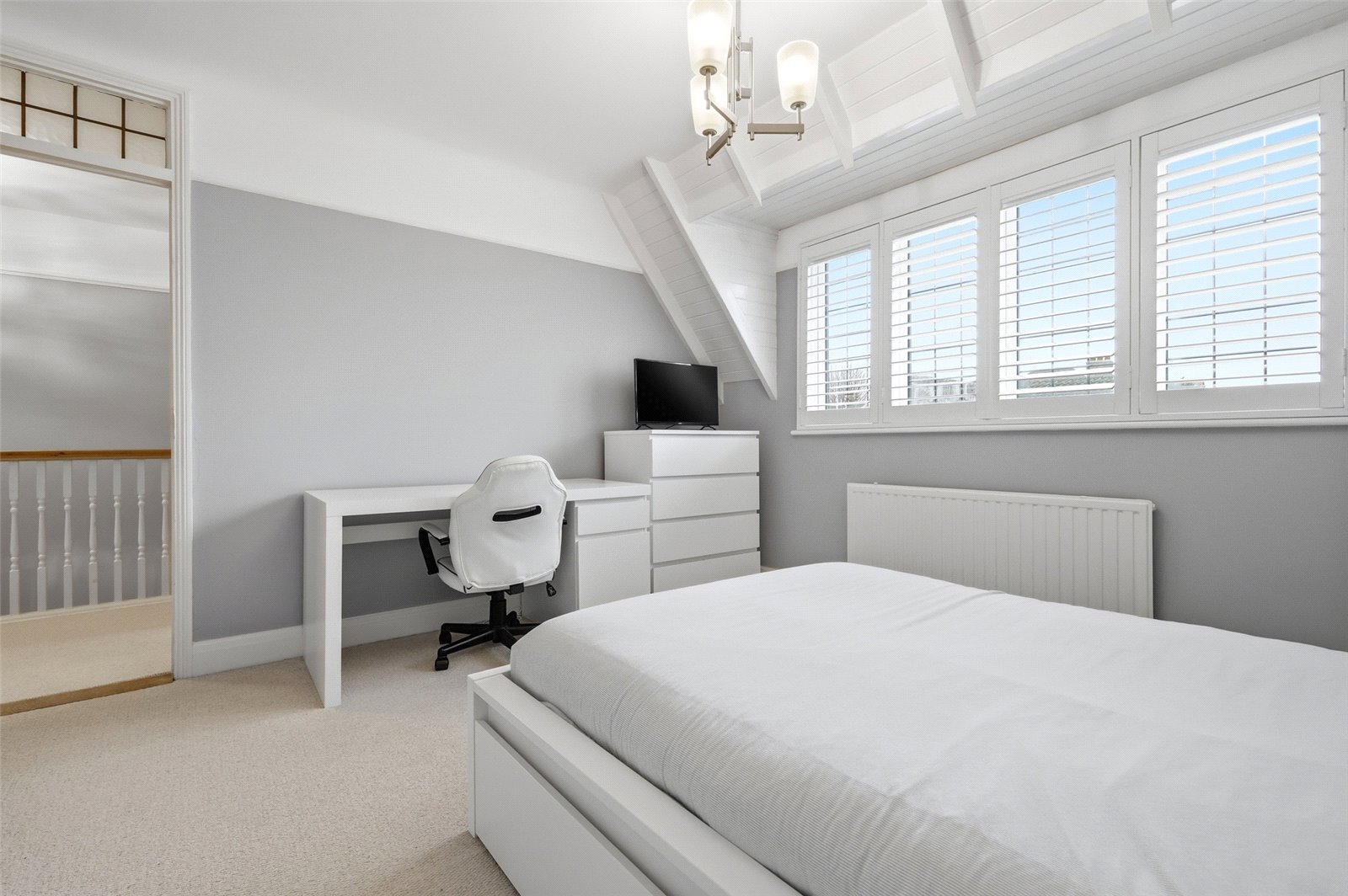UPVC double glazed window to front with fitted plantation shutter. Wall mounted radiator. Fitted wardrobe cupboard. High level skirting. Feature picture rail. Coved cornice to smooth plastered ceiling.