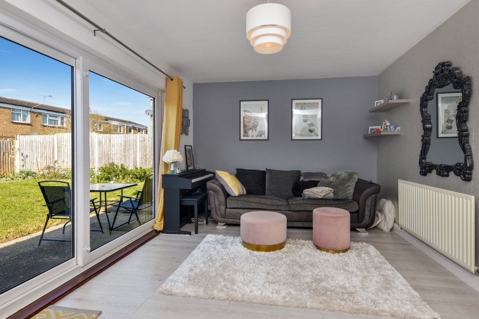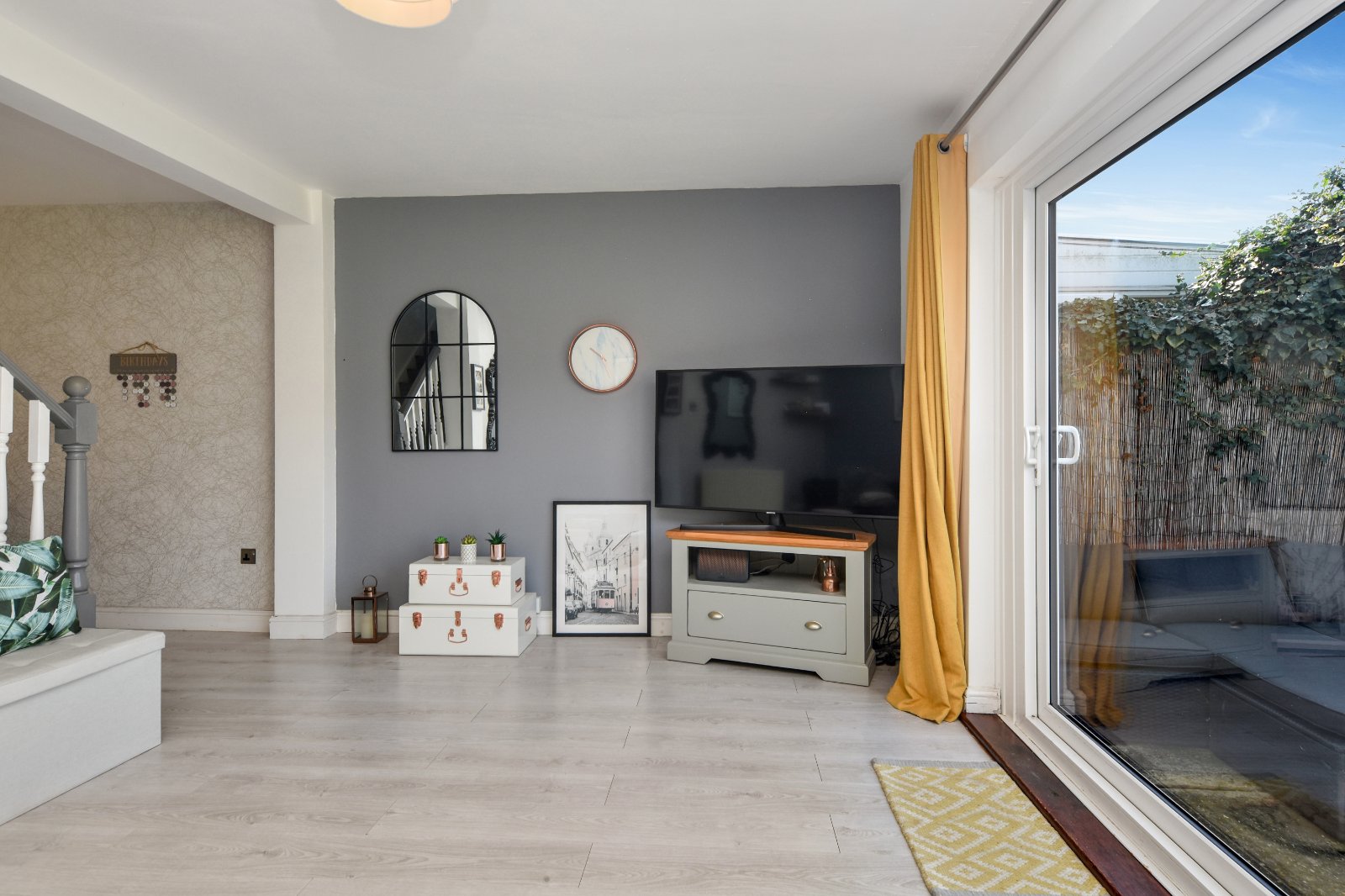 Pair of larger than average uPVC double glazed doors providing access and views across the WEST facing Garden. Radiator. Laminate wood effect flooring. Smooth plastered ceiling.