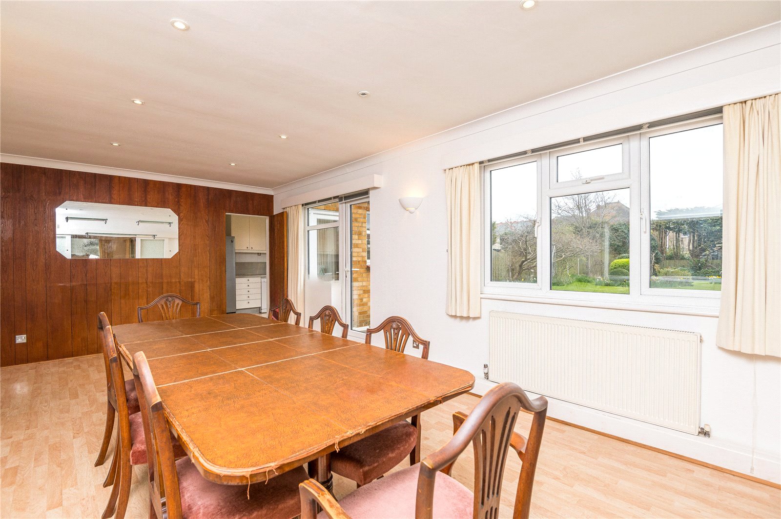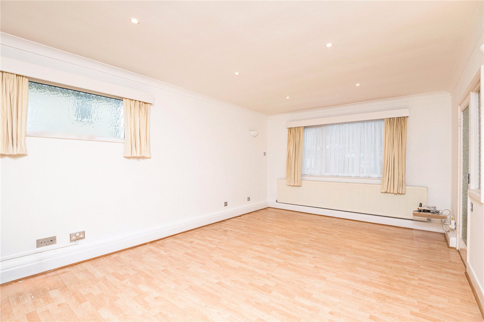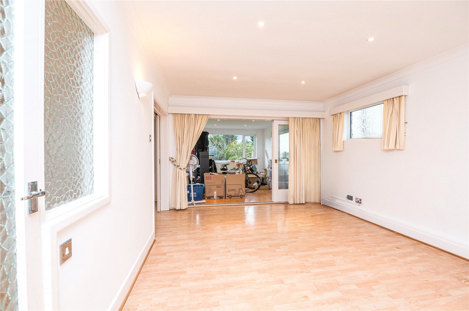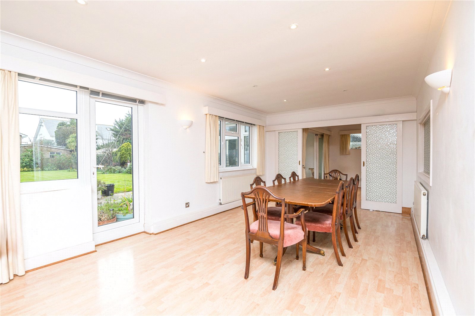 This bright and versatile room enjoys a triple aspect with double glazed picture windows to side and rear overlooking the rear garden. Double glazed French double doors and windows leading to the patio and garden. Wood flooring. Radiator. Recessed ceiling lighting.