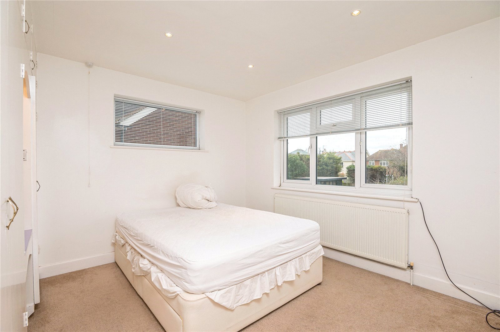 incorporating range of built in wardrobe cupboards. This bright double bedroom enjoys a dual aspect with double glazed windows to side and rear overlooking the garden. Radiator. Recessed ceiling lighting.