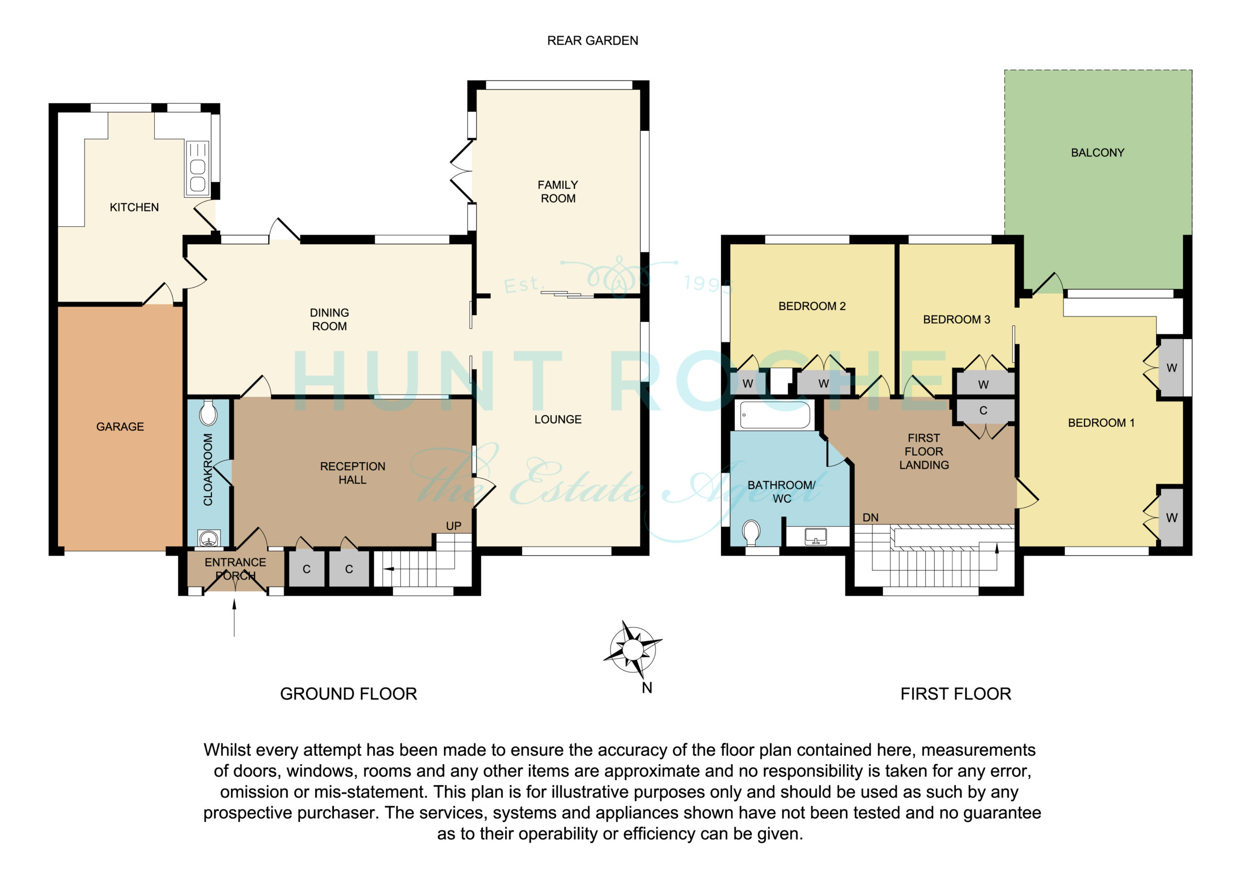 The property benefits from a large beautifully established South backing rear garden which is laid to lawn with sculptured edges, planted beds and borders, numerous maturing trees and shrubs. Extensive crazy paved patio areas. Outside lighting. Cold water tap. Side entrance.