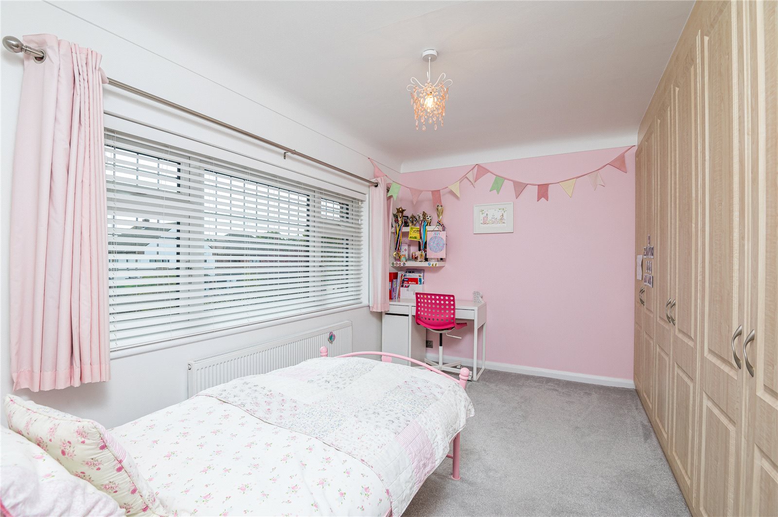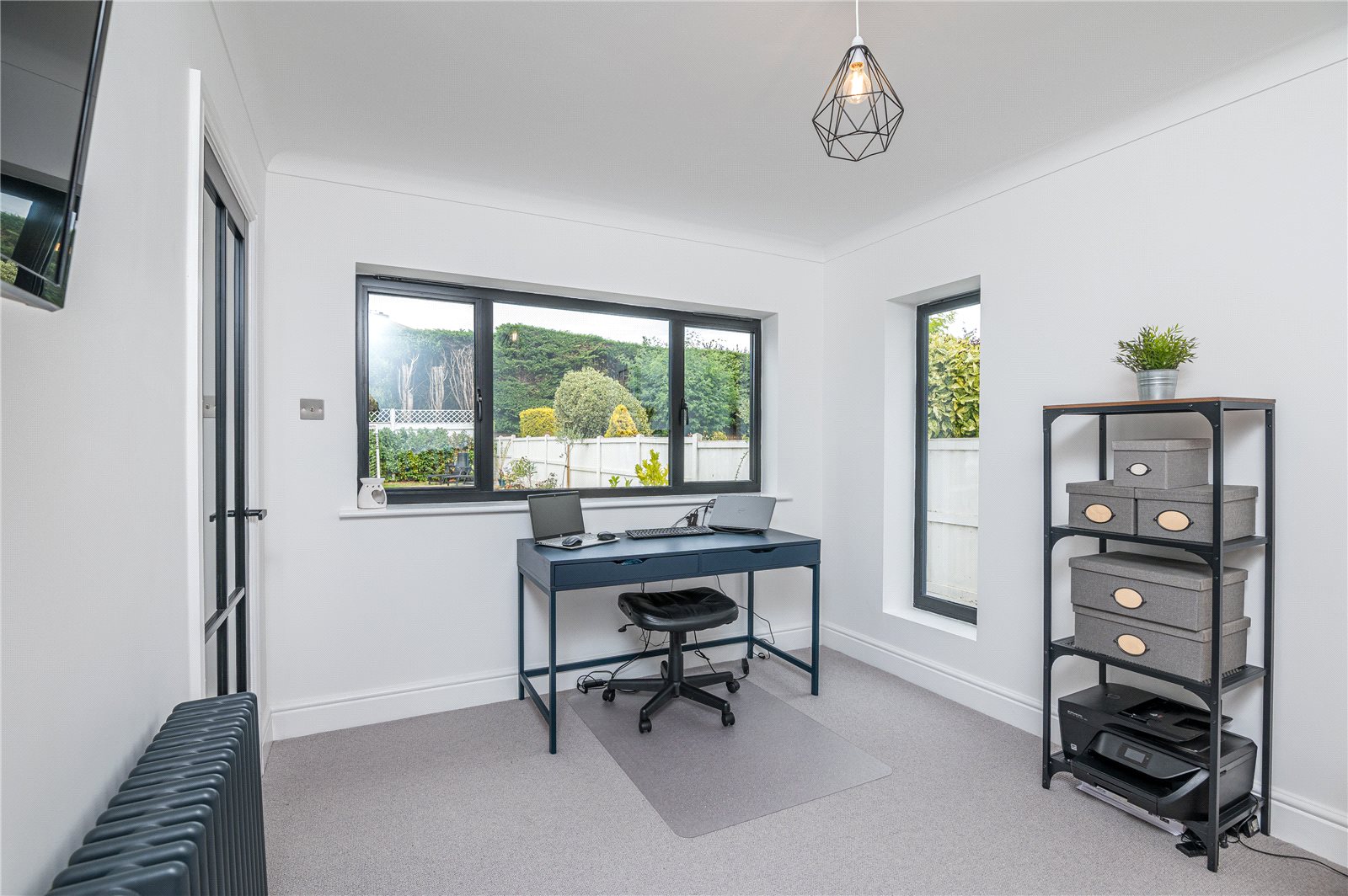 This bright room enjoys dual aspect with double glazed window to side and double glazed window overlooking the rear garden. Radiator