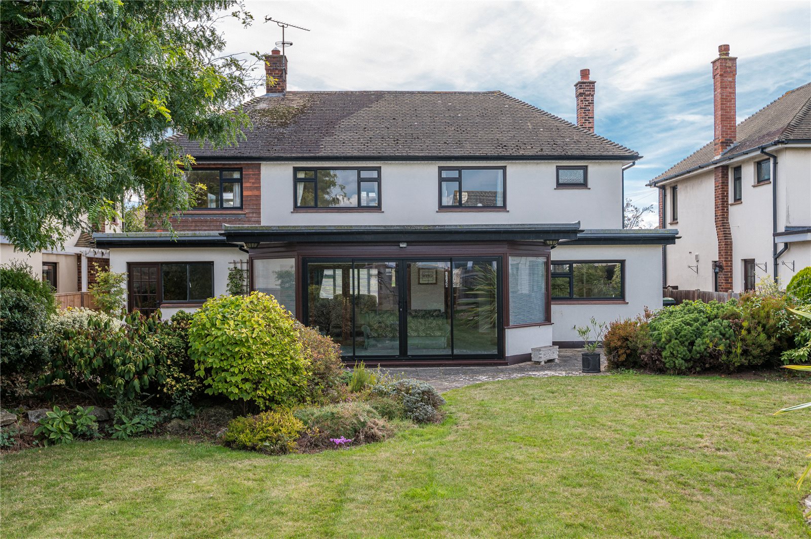 The property benefits from a large and well established rear garden which is laid mainly to lawn with planted beds and borders. Numerous maturing trees and shrubs. Extensive patio areas. Rockery. Outside lighting. Cold water tap. Wide side entrance.