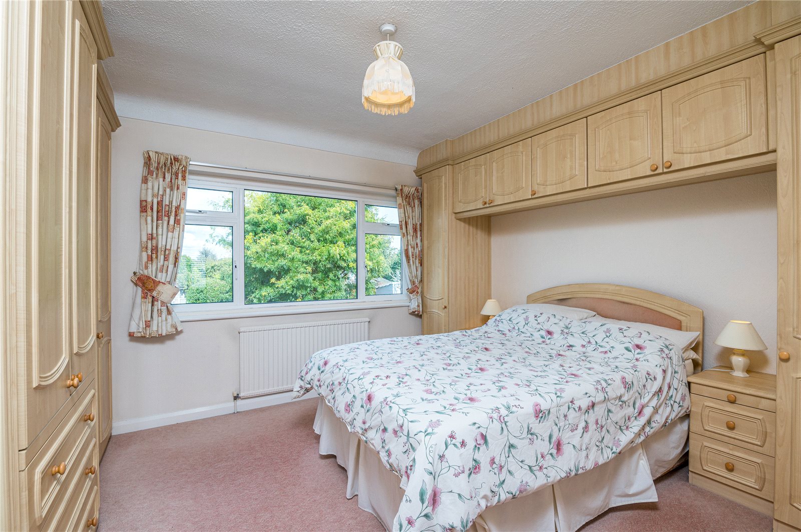 Plus full width range of modern built in wardrobe cupboards. Further wardrobe cupboards with bed recess between, lockers above and bedside cabinets. Double glazed window overlooking the rear garden. Radiator.