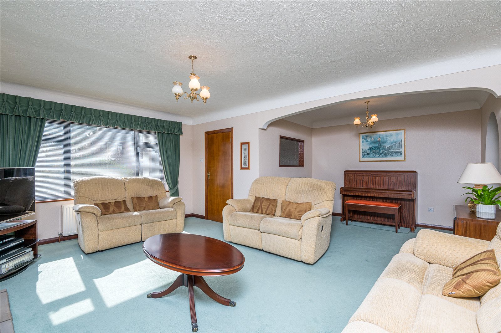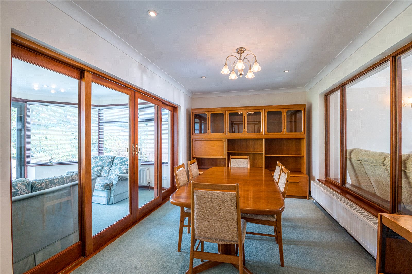 Radiator. Coved ceiling. Glazed double doors leading to the kitchen. Further glazed double doors leading to the sun lounge and garden. Further double glazed doors leading to the dining room.