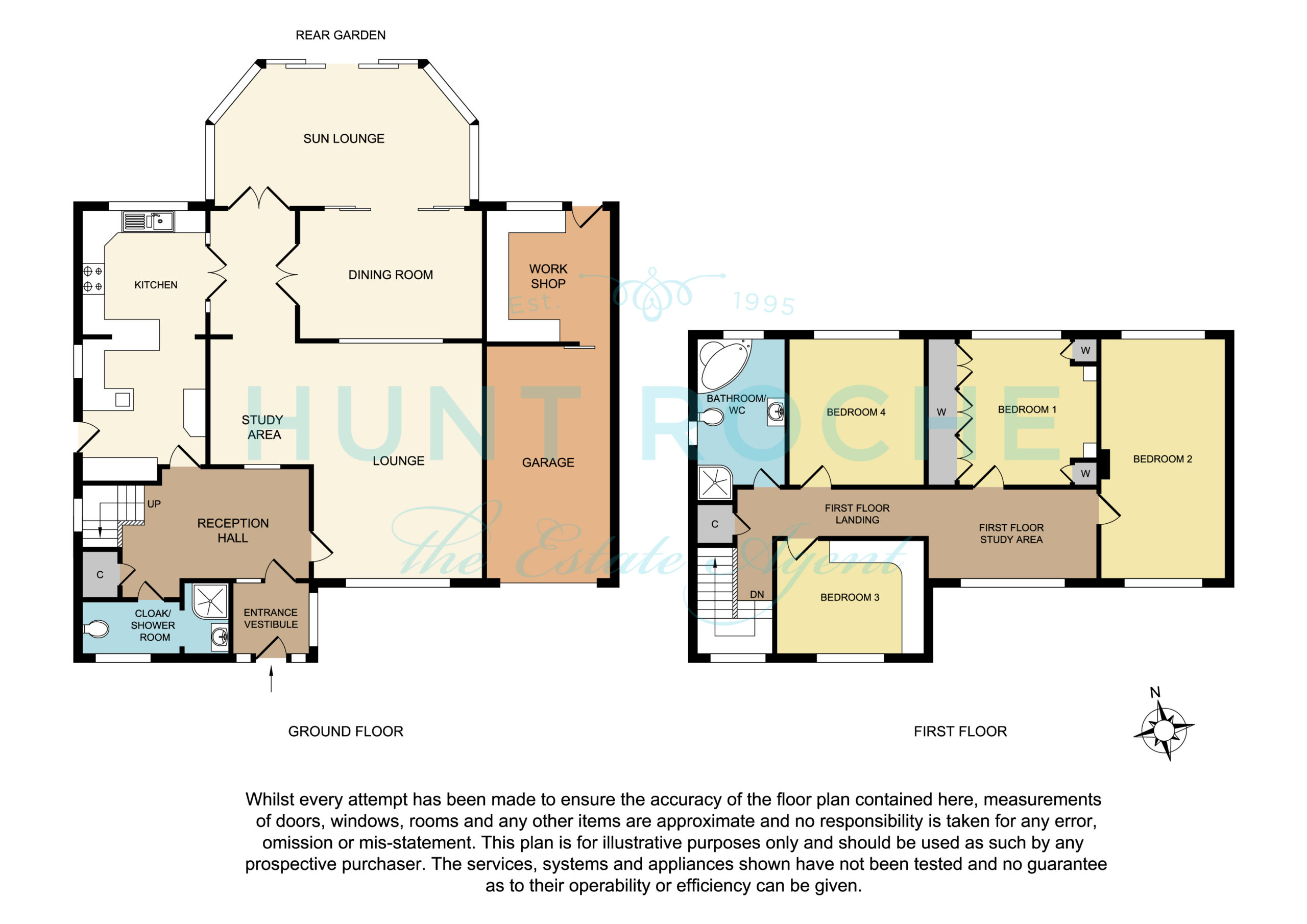 Fitted with a white suite comprising panelled corner bath and mixer tap and shower attachment. Separate fully tiled quadrant corner shower cubicle. Pedestal wash hand basin with mixer tap. Concealed WC. Fully tiled walls. Shaver point. Chrome heated towel. Recessed ceiling lighting. Double glazed windows to side and rear.
